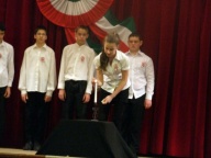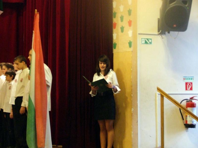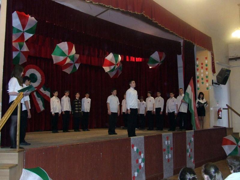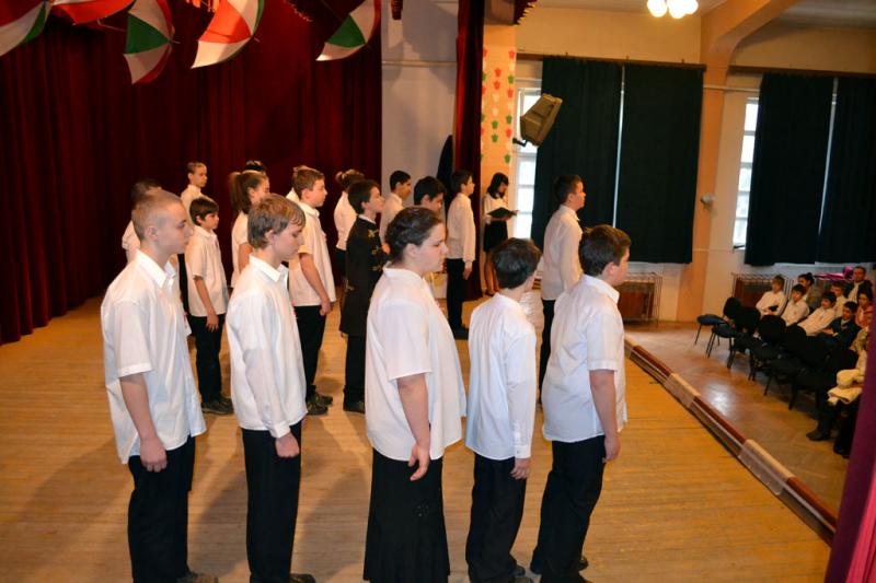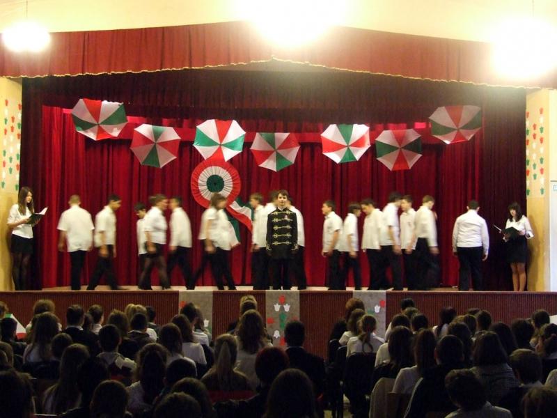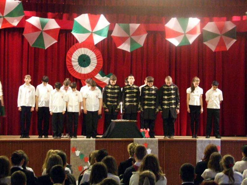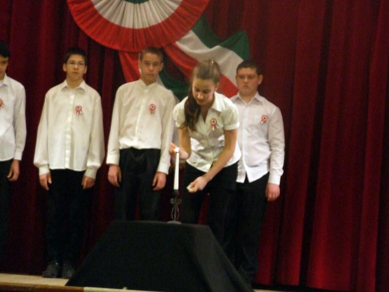 A hagyományokhoz híven az idén is az egyik 8. osztály készítette az október 23-ai iskolai és városi megemlékezésre a műsort.