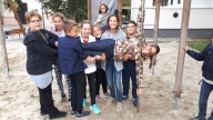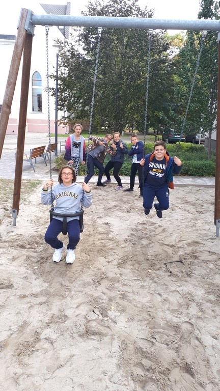 Az EFOP 3.1.8.17-00148-as azonosítószámú pályázat záró kirándulására 2019. október 03-án és 04-én került sor, amikor ismét Csengődre és Kiskőrösre látogattunk el 15 diák és Domján Tünde kolleganőm kíséretében. A reggel 8 órási indulás után szabadtéri programot terveztünk, de a zord időjárás miatt ez meghiúsult. Inkább elfoglaltuk szállásunkat a Kőrisfa Hostelben, és a közös helyiségben mindenféle játékkal szórakoztattuk magunkat. Délelőtt még sétáltunk egyet Kiskőrös belvárosában, majd a Szarvas étteremben megebédeltünk. Az ebéd utáni finom fagyi-süti nem maradhatott el immár kedvenc cukrászdánkban. Jóllakva és tele kíváncsisággal indultunk el a János Vitéz Látogatóközpontba, amit a gyerekek nagyon élveztek. Szinte benne éltek a mesében, úgy járták végig a történetet. Az interaktív múzeumlátogatás után még egy múzeum pedagógiai foglalkozáson vettünk részt ugyanitt, Épített környezet címmel. Hatalmas élmény volt, ahogy a gyerekeknek különböző geometriai alakzatokból, majd testekből kellet kirakni, felépíteni más alakzatokat, építményeket. Komoly fejtörést jelentett néhány feladat még nekünk, pedagógusoknak is. A sok elméleti okoskodás után egy kis vidám játszóterezés várt az ifjakra, itt vacsoráig remekül múlatták az időt. A vacsora ismét a Pizzaphone étteremben volt, ahol hatalmas pizzákkal csillapítottuk éhségünket. A szálláson ismét közös játékokkal, társasozással telt el az este, és időben lefeküdtünk, mert már nagyon vártuk a másnapi találkozót a csengődi gyerekekkel.
