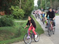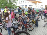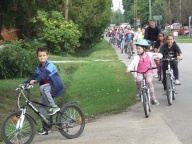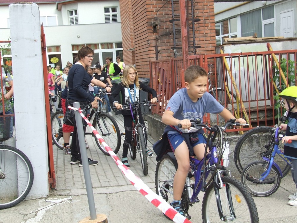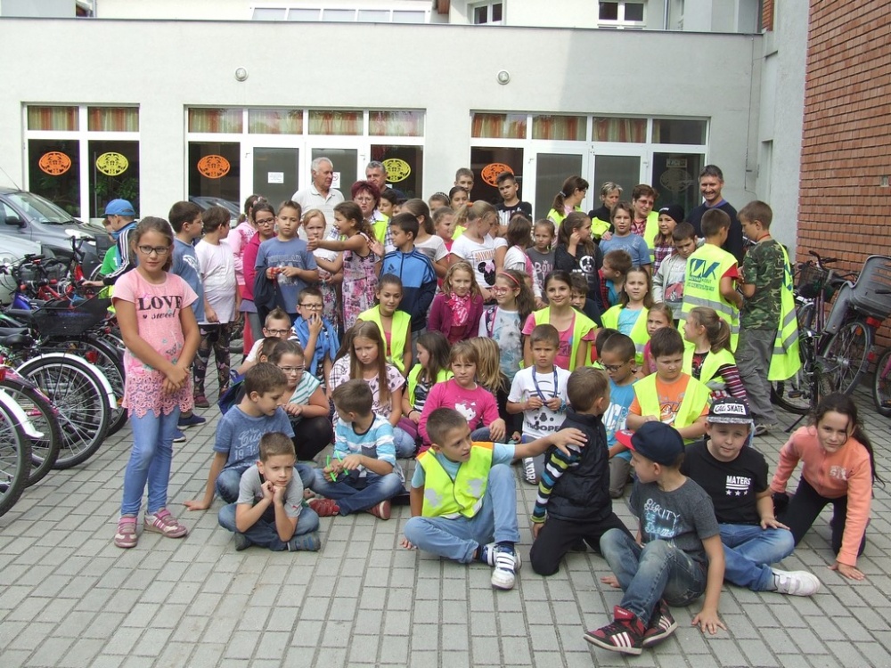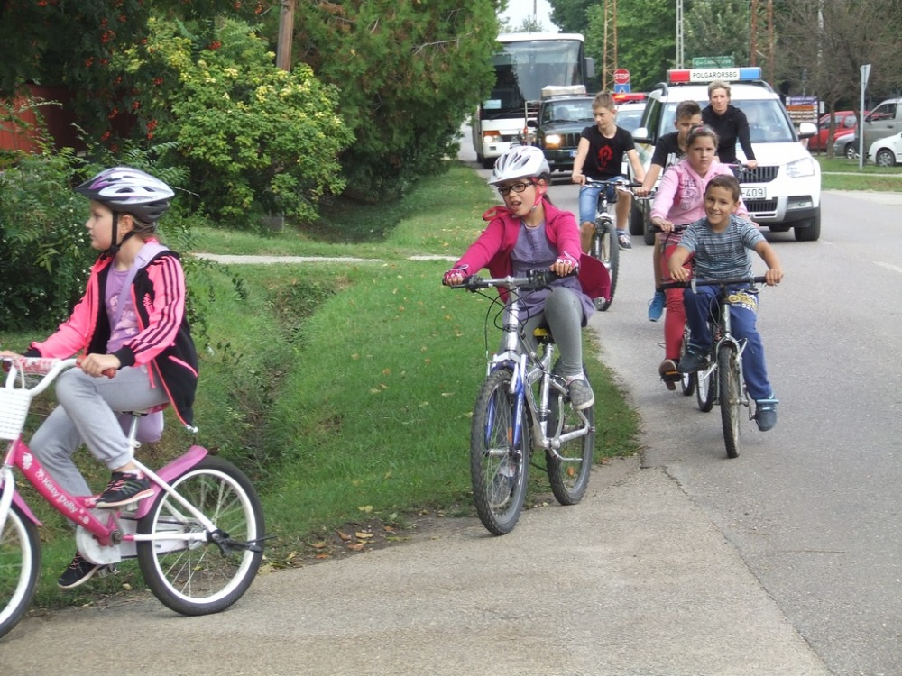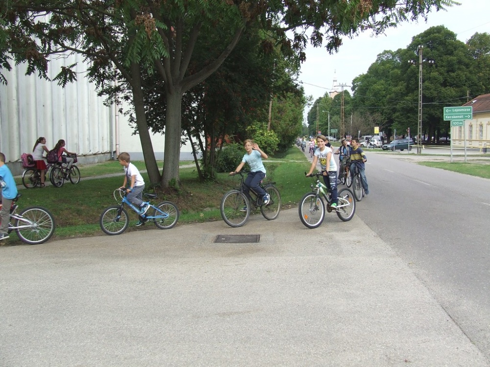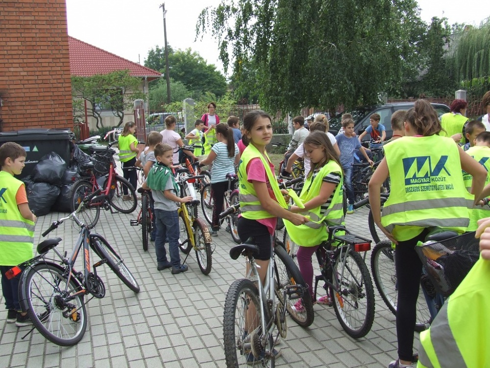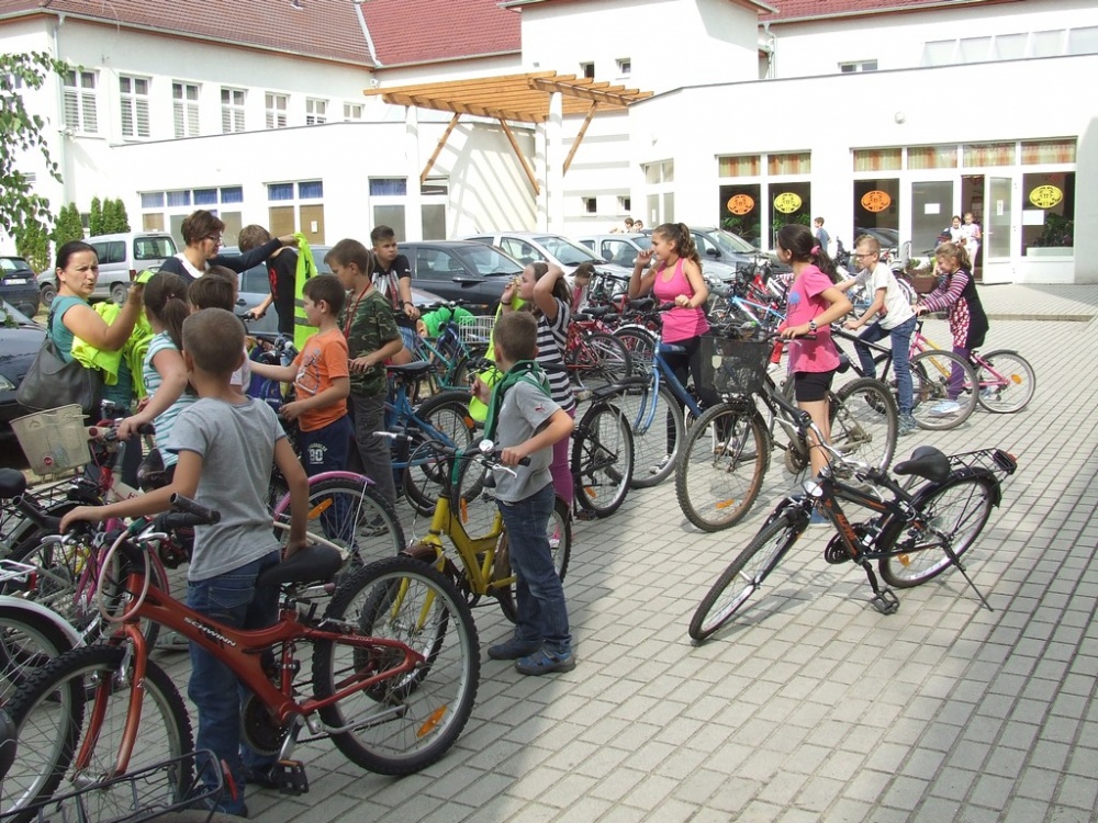 Az Európai Mobilitási Hét rendezvénysorozat keretében a Móra Ferenc Általános iskolában kerékpáros felvonulást tartottunk szeptember 20-án délután a város utcáin. 73 tanuló és 7 felnőtt kerekezett 5 km-t. A hosszú menetet a helyi Rendőrség és Polgárőrség képviselői kísérték, vigyáztak a biztonságos közlekedésre. A kellemes időben tett túra után totót töltöttek ki a résztvevők a helyes közlekedésről, környezetvédelemről. Amíg a totó kiértékelése zajlott, a gyerekeket pogácsa és gyümölcslé uzsonna várta az emeleti aulában. Az eredmény hirdetéskor sok értékes jutalom talált gazdára, pl. kerékpár felszerelési tartozékok, láthatósági mellények, környezetbarát zsebszámológépek, tollkészletek. Mindenkinek jutott az egészséges Müzli szeletből.