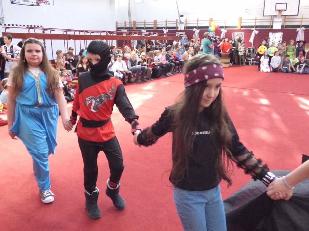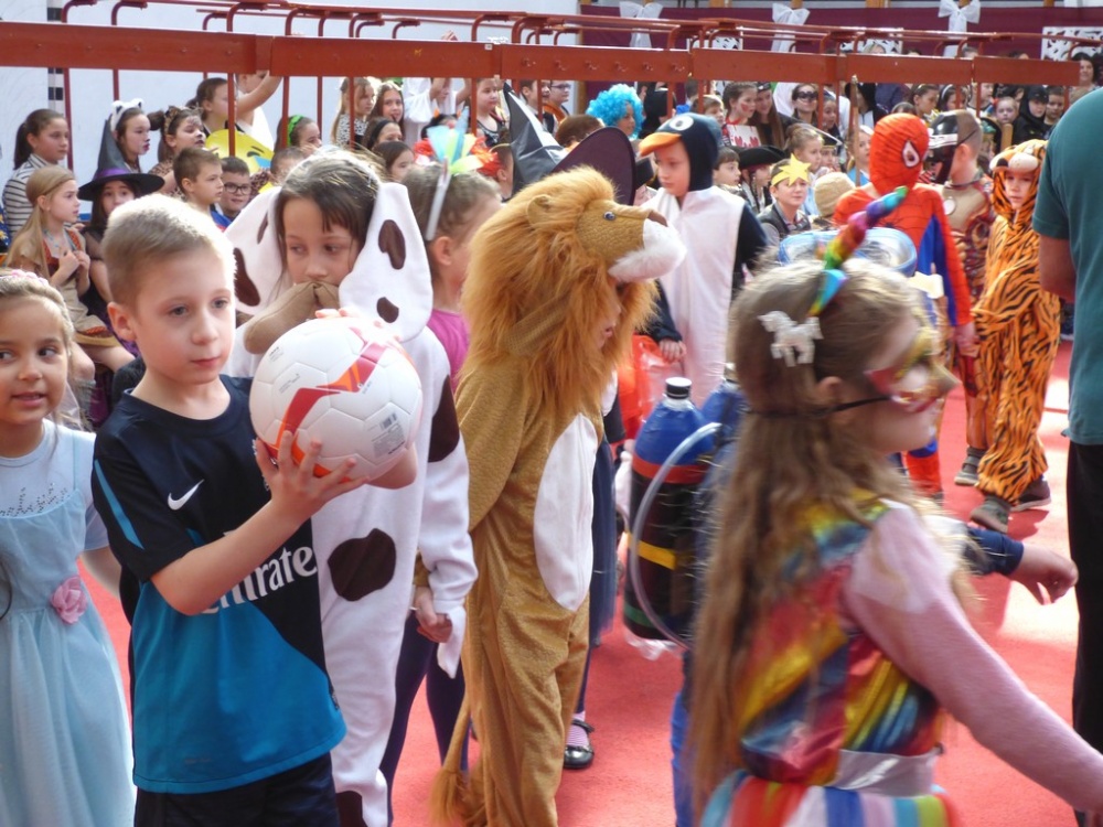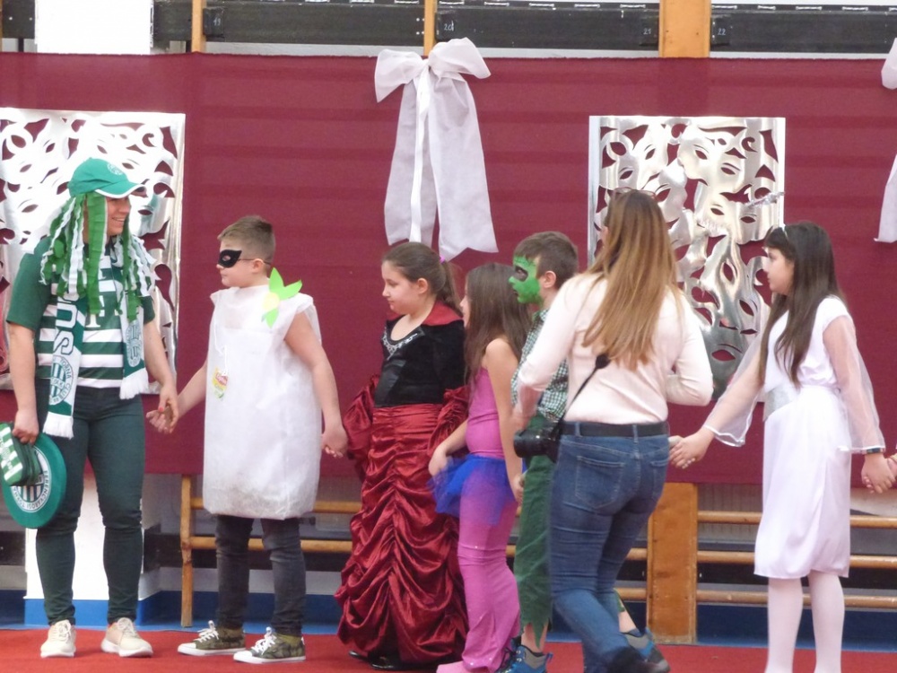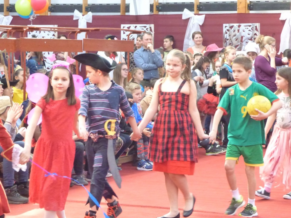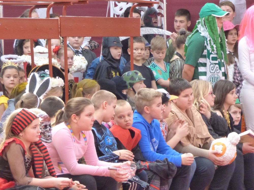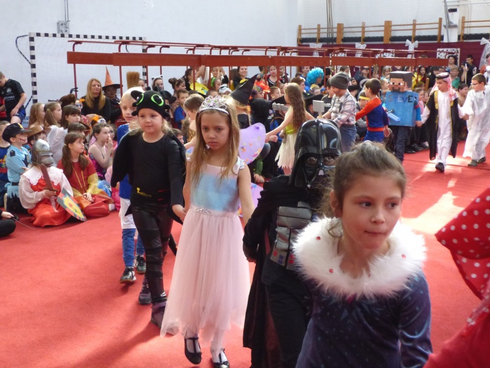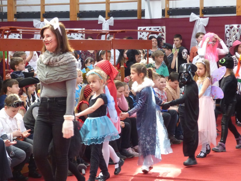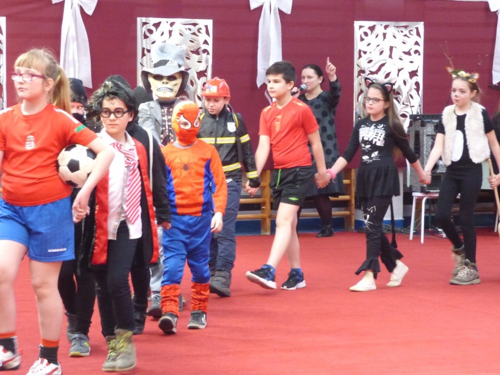 Péntek délután rendeztük meg a hagyományos iskolai farsangi mulatságot. Először a 3.d osztály hozta meg az étvágyunkat a szilvásgombócról szóló produkciójával, mely után az elmaradhatatlan jelmezes felvonulás következett. Az ötletes, szebbnél szebb jelmezekbe öltözött gyerekek a tornacsarnok piros szőnyegén körbe sétálva, büszkén mutatták meg, mi lakozik a lelkükben, mivé szeretnének átalakulni, hiszen a hagyomány szerint farsang idején bárki azzá válhat, amivé csak akar.