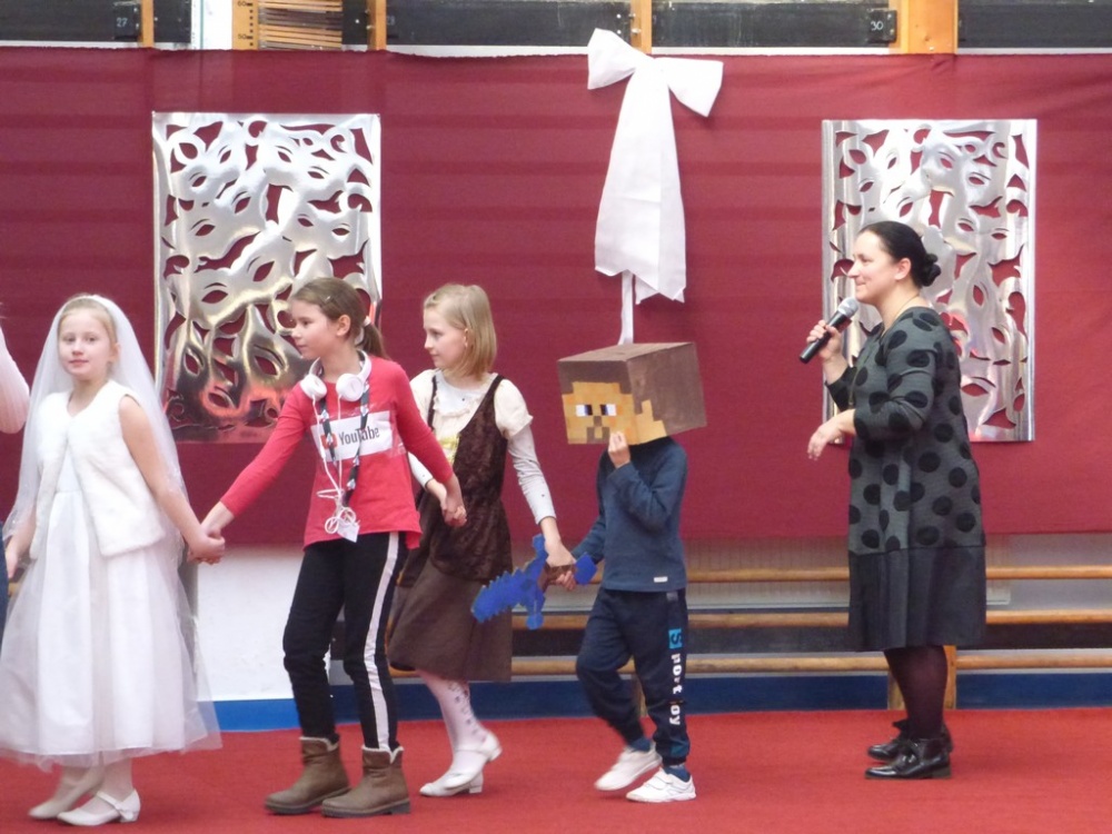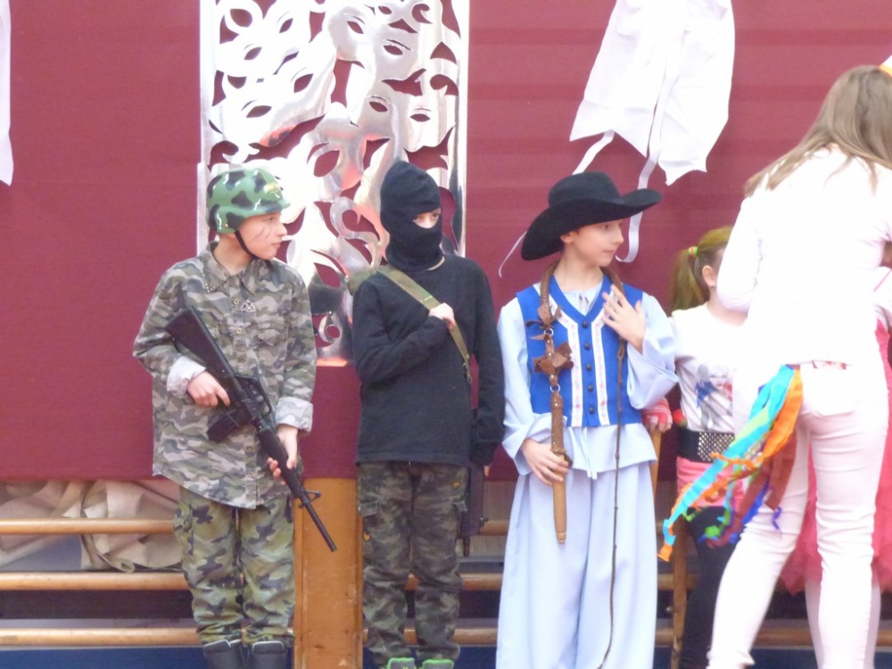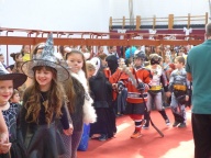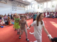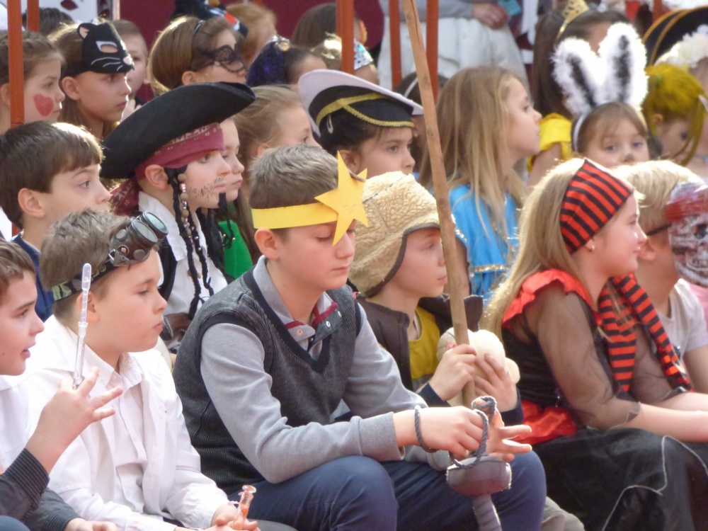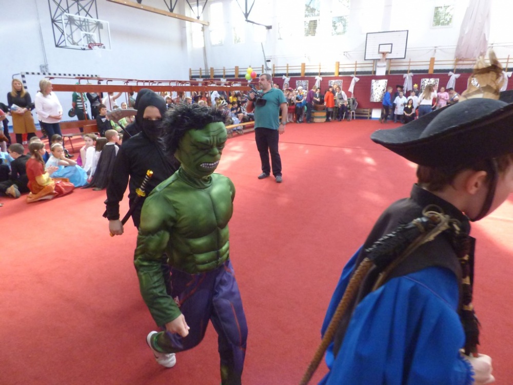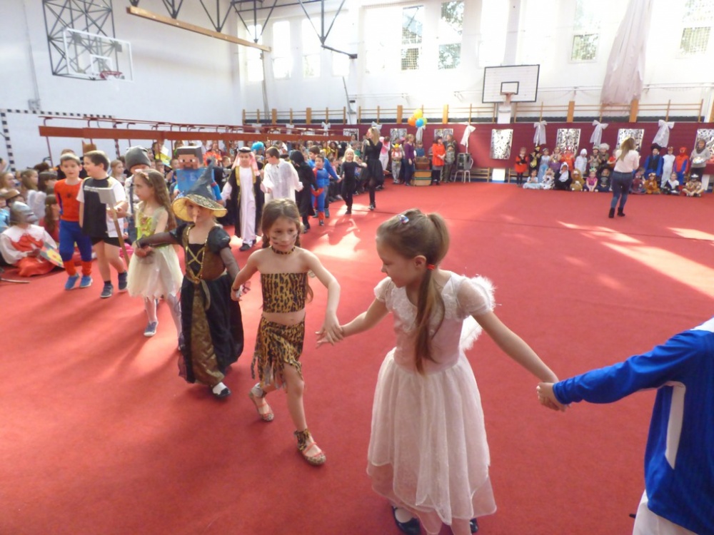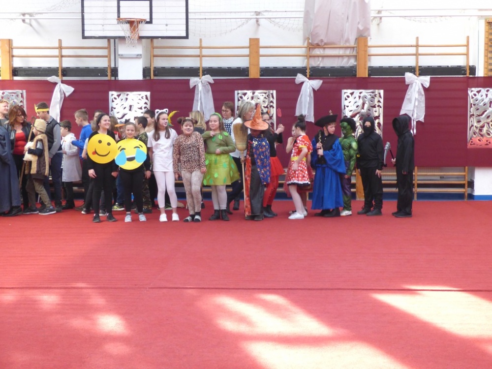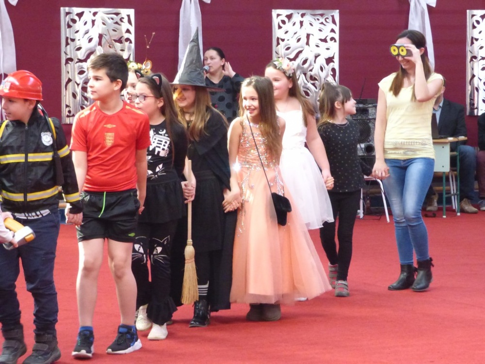 Péntek délután rendeztük meg a hagyományos iskolai farsangi mulatságot. Először a 3.d osztály hozta meg az étvágyunkat a szilvásgombócról szóló produkciójával, mely után az elmaradhatatlan jelmezes felvonulás következett. Az ötletes, szebbnél szebb jelmezekbe öltözött gyerekek a tornacsarnok piros szőnyegén körbe sétálva, büszkén mutatták meg, mi lakozik a lelkükben, mivé szeretnének átalakulni, hiszen a hagyomány szerint farsang idején bárki azzá válhat, amivé csak akar.