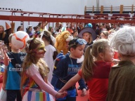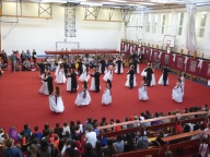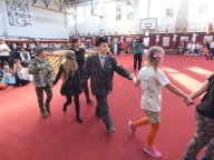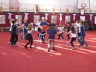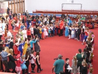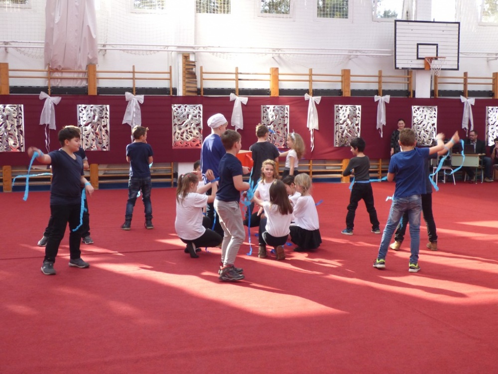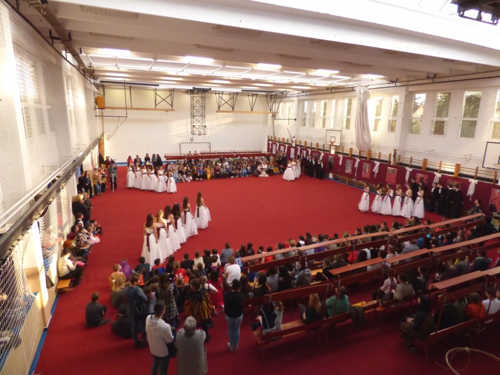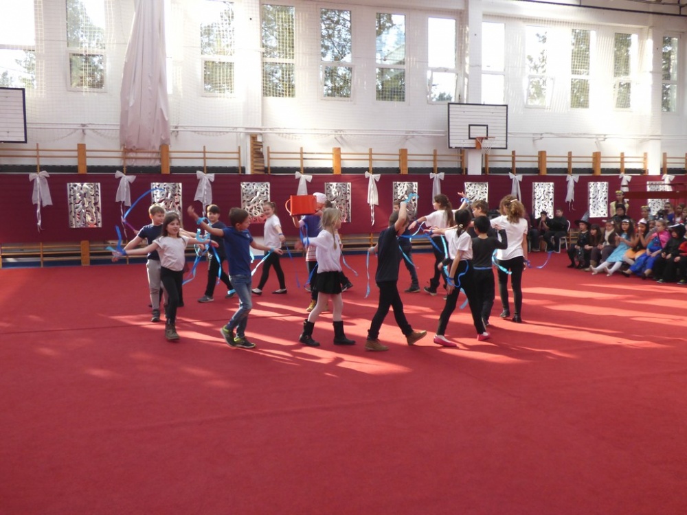 A felvonulás után mindenki jól lakhatott a konyha dolgozói által készített illatos, finom mazsolás fánkkal, majd kezdetét vette a tánc és a játék. A tornacsarnokban táncház és Disco várta a gyerekeket, az osztálytermekben társasjátékokkal, ügyességi játékokkal szórakoztatták a diákokat tanáraik.