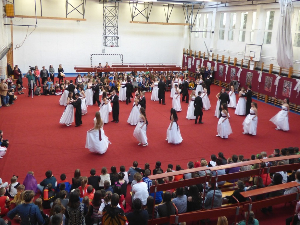 Az alsó és a felső tagozat bálját a nyolcadik évfolyam csodálatos keringője kötötte össze, melyre sok-sok munkával és nagy izgalommal készültek a gyerekek. Csőszi Sanyi bácsi ezúttal is látványos koreográfiát komponált, melyet mindenki lelkesedése és tudása szerint el is sajátított. Az eredményben pedig mindenki kedvét lelhette.