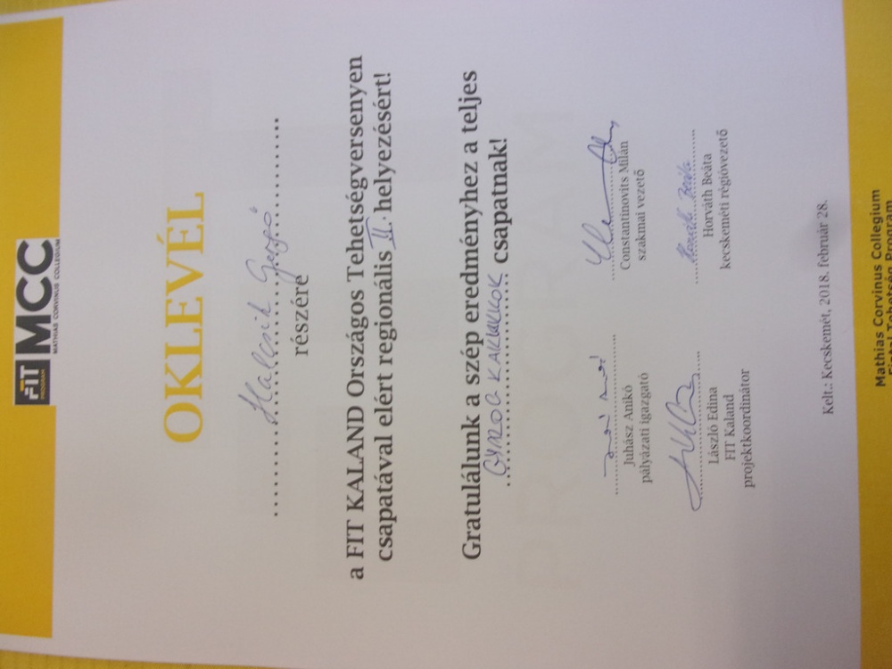 Iskolánkból több 4. osztályos csapat is jelentkezett a Mathias Corvinus Collegium Fiatal Tehetség Programja által meghirdetett FIT Kaland Országos Tehetségversenyre.