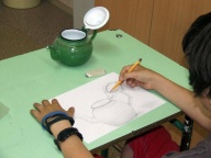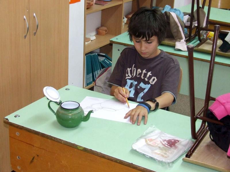 Minitárlat az iskolai könyvtárban Jakubik István képeiből.