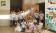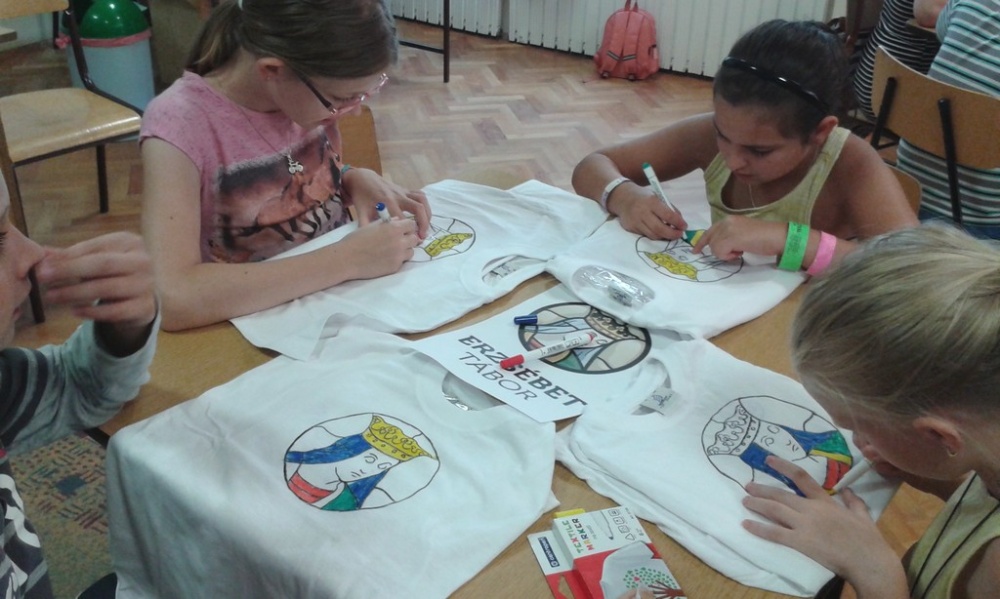 A pólókra – amit ajándékba kaptak a gyerekek -, az Erzsébet Tábor logóját rajzolták és színezték ki. Ezáltal lett egységes az összetartozást hirdető póló.