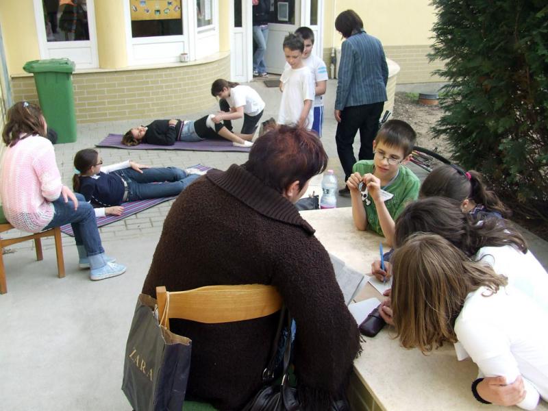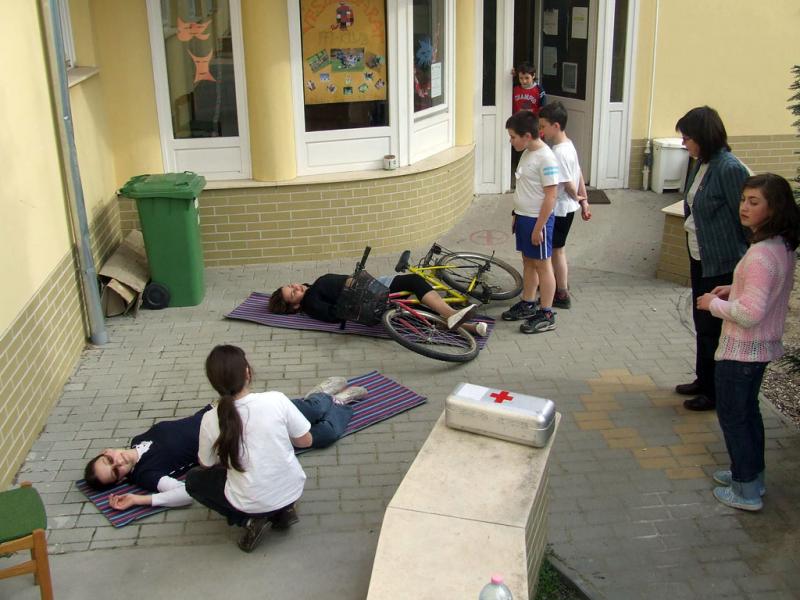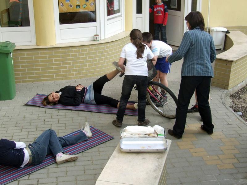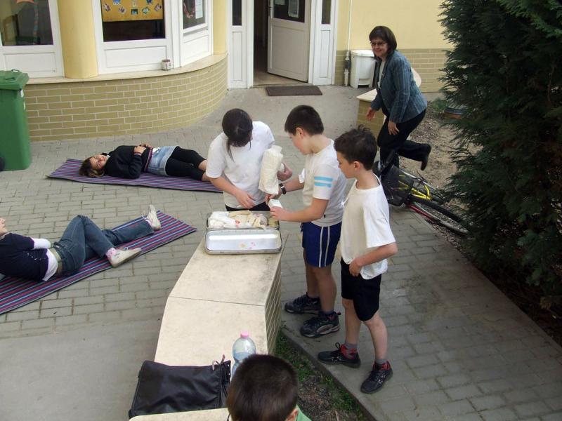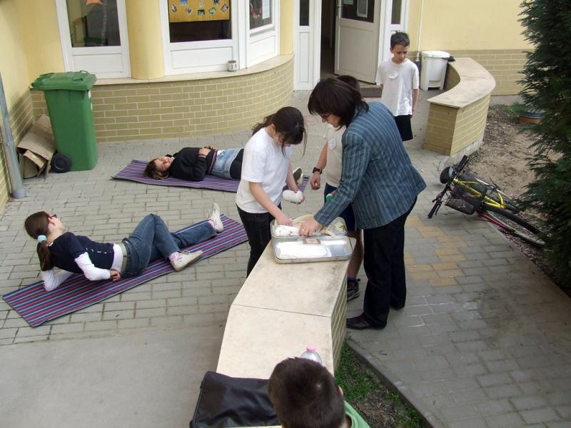 Nagyon készültünk a Katasztrófavédő szakkörösökkel az egészséghétre. Jött egy ötlet, hogy bátoríthatnánk az iskolatársainkat, hogy vegyék észre, ha valaki bajba jutott.