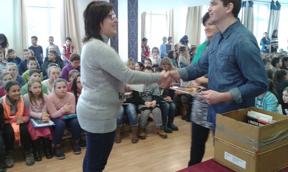A 2016-2017-es tanév szeptemberében induló Kalandos versenyre 35 csapat nevezett, akik folyamatosan oldják meg a különböző fordulók feladatait. Most, január 27én a Szalay Kiadó képviselői, ellátogattak az iskolánkba, és személyesen találkoztak a csapatok tagjaival valamint a pedagógusokkal. A csapatok bemutatták a csatakiáltásokat, a csapatzászlóikat. Minden résztvevő Kalandos verseny feliratú karkötőt és a felkészítő pedagógus egy könyvet kapott ajándékba. Jó hangulatú találkozó részesei voltak a csapatok.