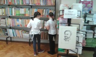 Minitárlat az iskolai könyvtárban Jakubik István képeiből.