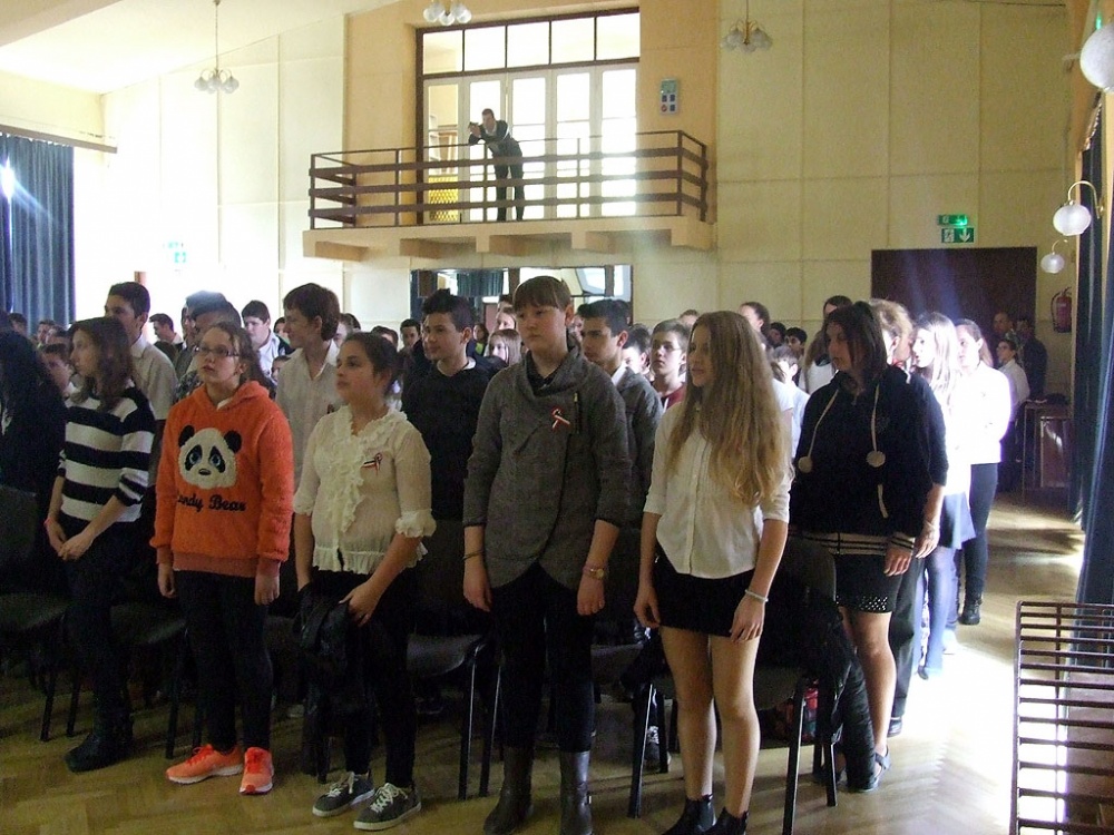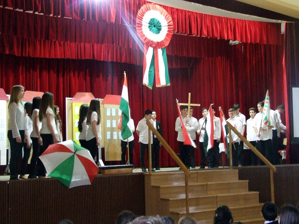 A hagyományokhoz híven az idén is az egyik 8. osztály készítette az október 23-ai iskolai és városi megemlékezésre a műsort.