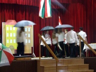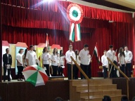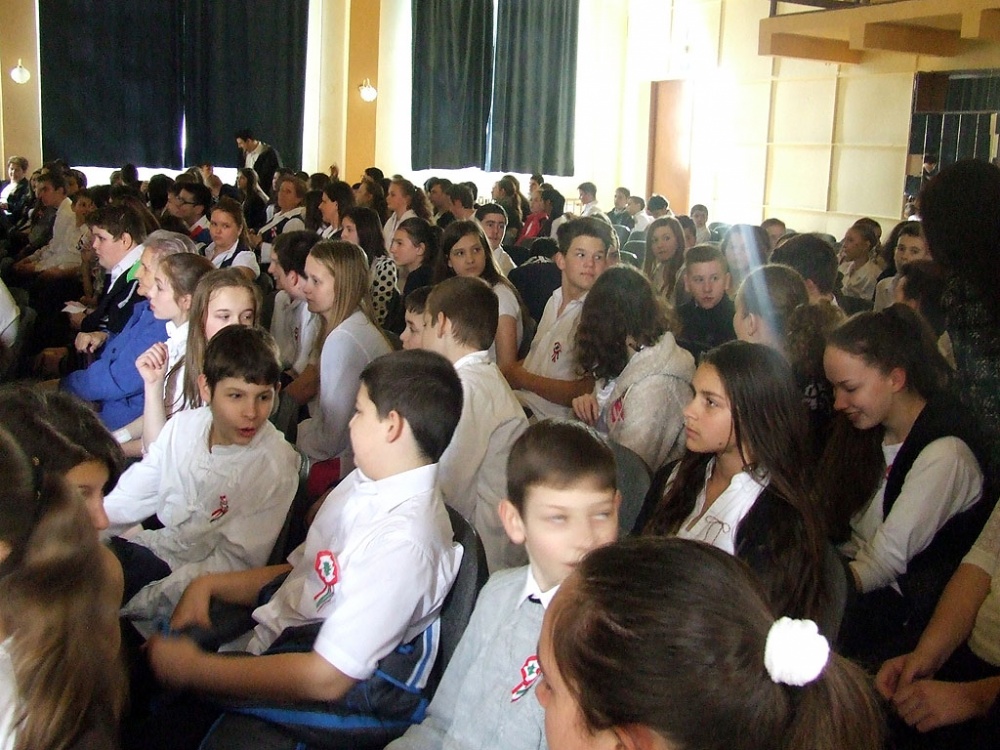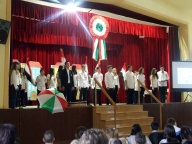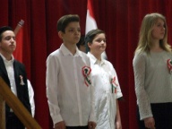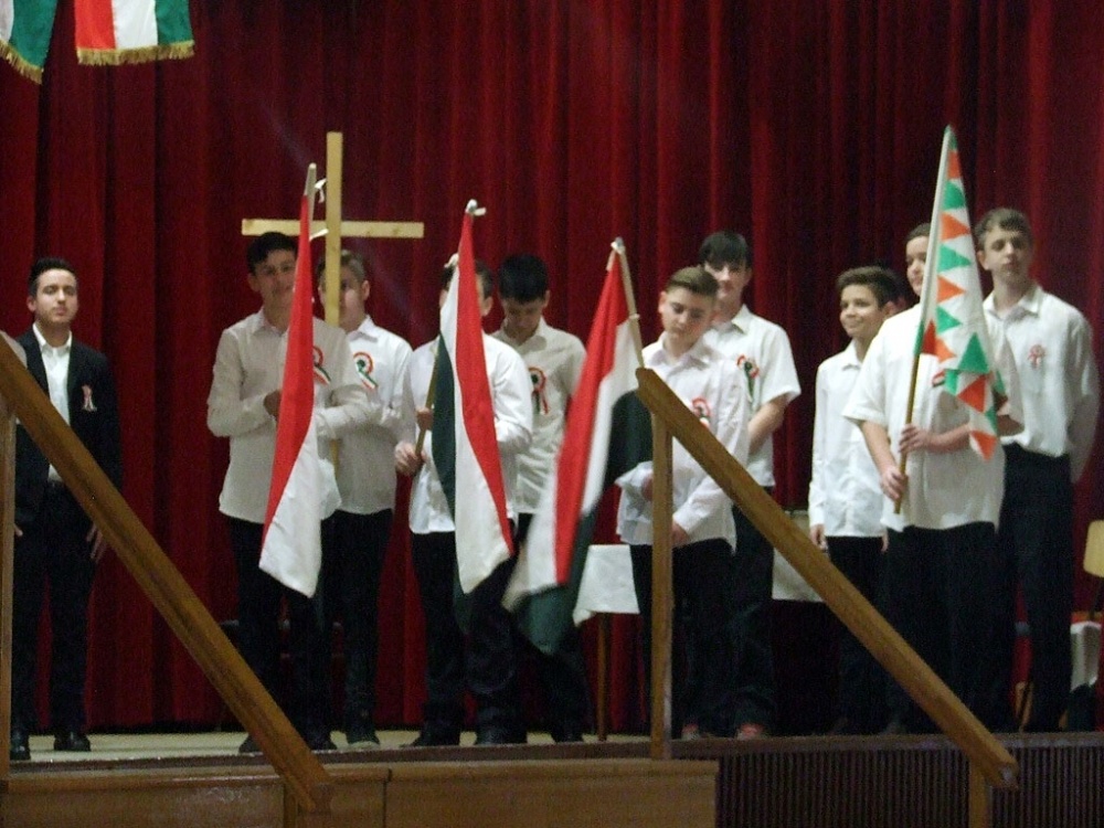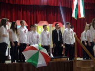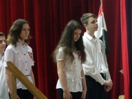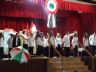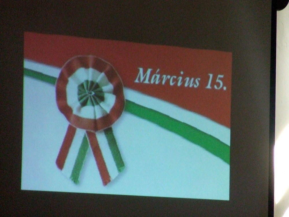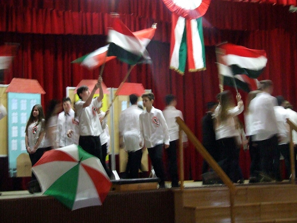 A március 15-i megemlékezésen a 7. a osztály állt színpadra. A hosszú hétvége miatt már 11-én lezajlott az iskolai ünnepség, ám az ünnepnapon is szerepeltek diákjaink a városi rendezvényen. Sok-sok gyakorlás, próbák hosszú sora előzte meg a szereplést - nem hiába! Tartalmas és látványos műsorral rukkoltak elő a hetedikesek, s a díszletet is maguk festették. A forgatókönyvet Pálházi Ilona tanárnő állította össze. A műsor betanításában a gyerekek segítségére volt Halcsikné Fejes Anetta osztályfőnök, a lebonyolításban pedig Árvai Tamás és Herczeg Irén tanárnő is közreműködött.