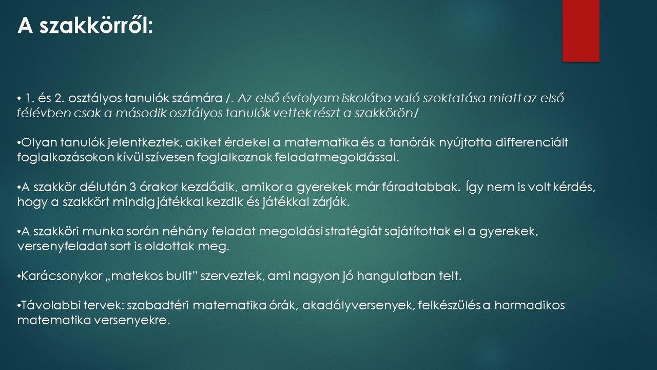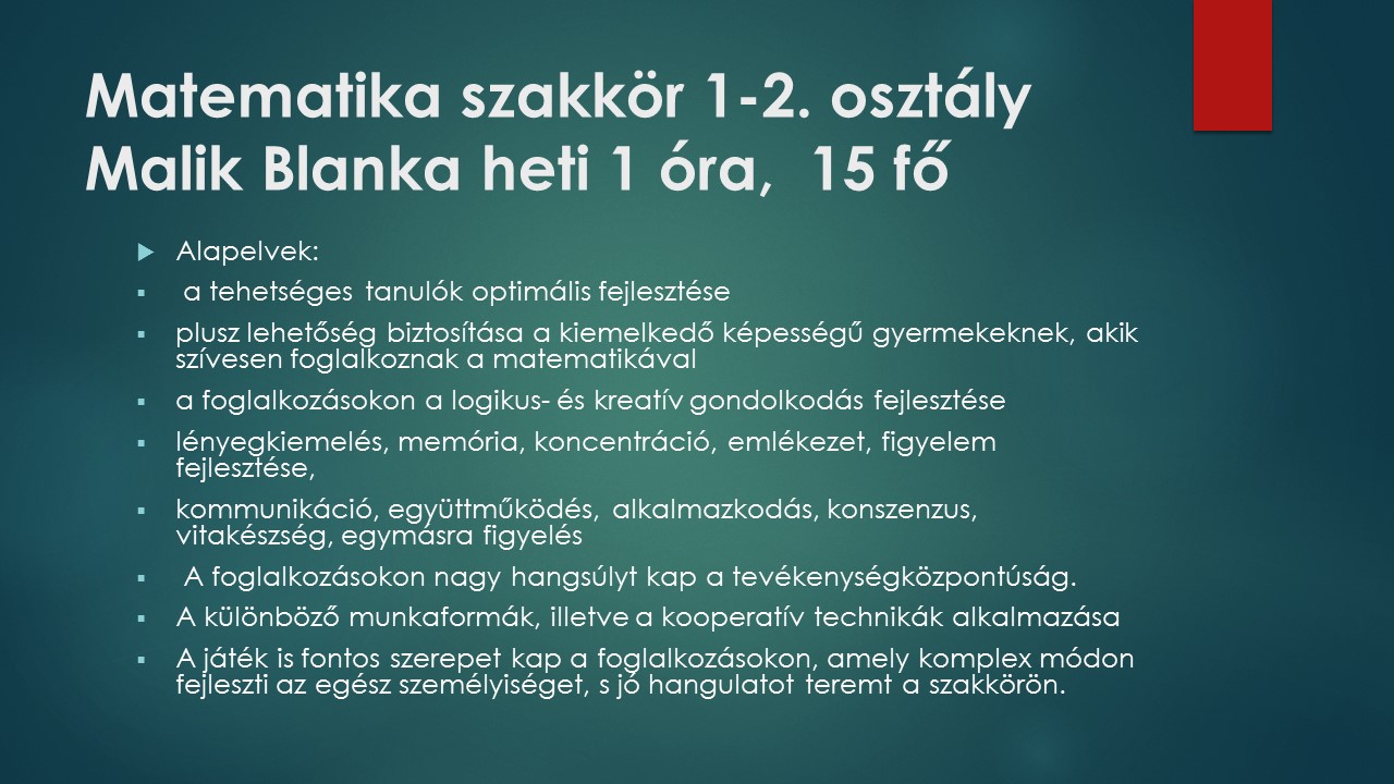 Matematika szakkör 1-2. osztály