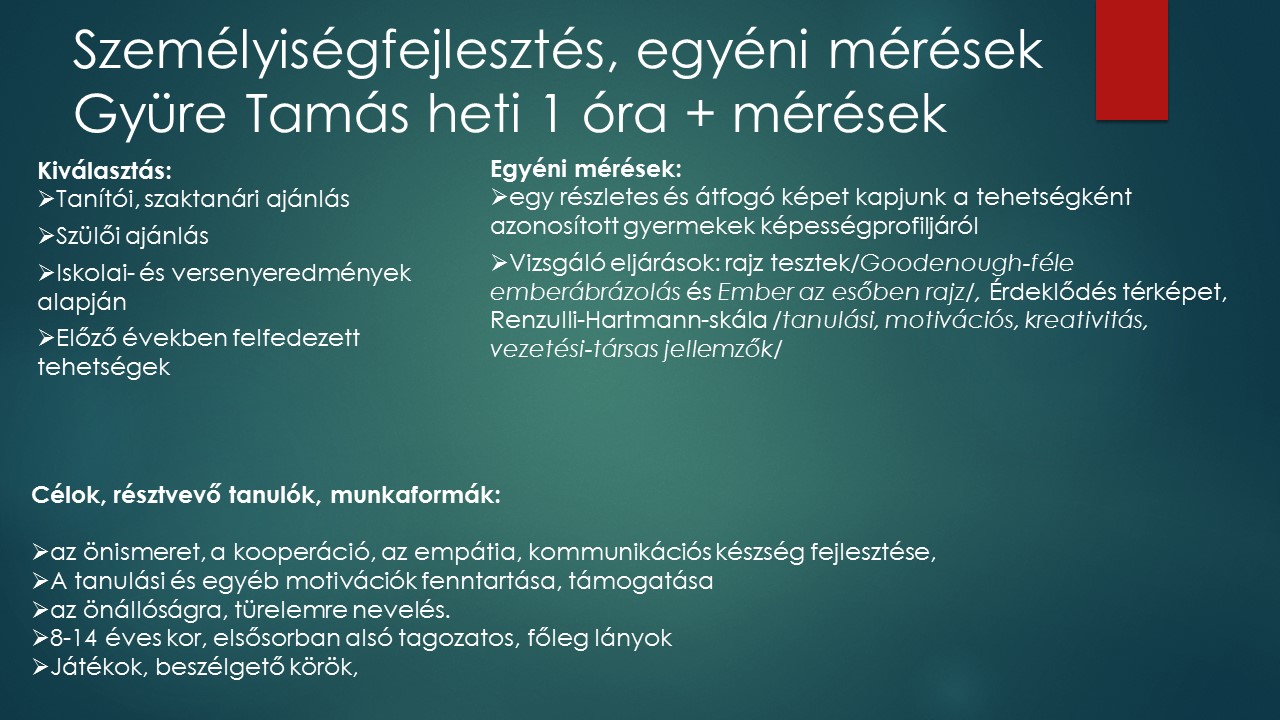 A pályázatban vállalt programunkkal célunk a pályaorientáció megerősítése az iskolákban, a pályaválasztásban résztvevő pedagógusok, szakszolgálati munkatársak és szakmai partnerek bevonásával.