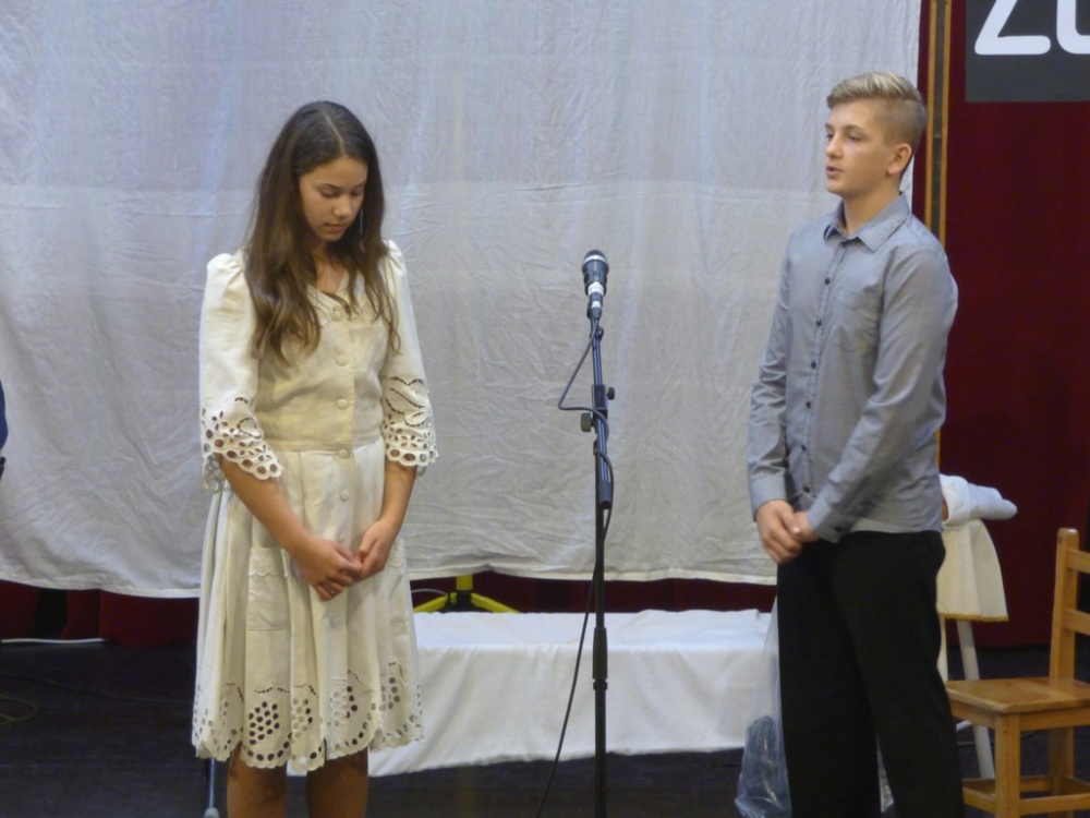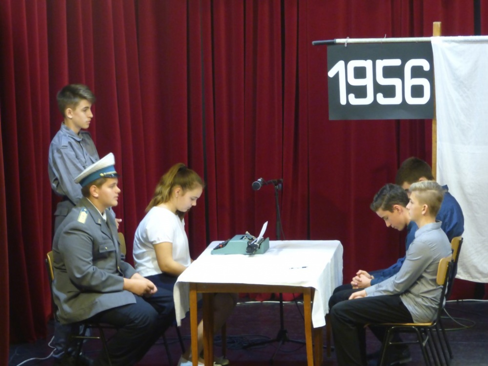 A hagyományokhoz híven az idén is az egyik 8. osztály készítette az október 23-ai iskolai és városi megemlékezésre a műsort.