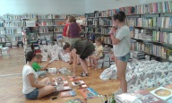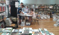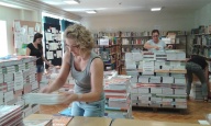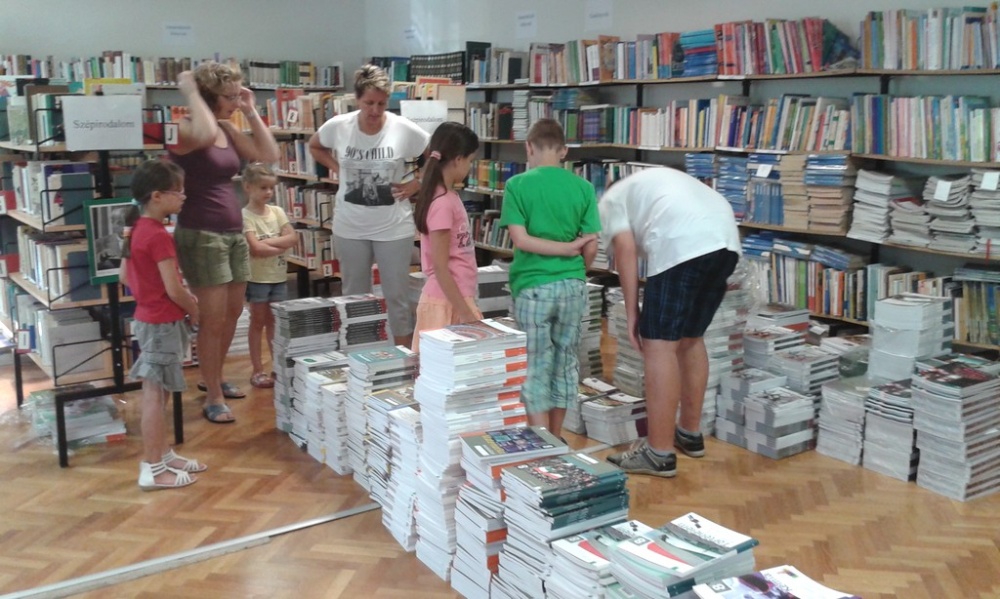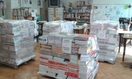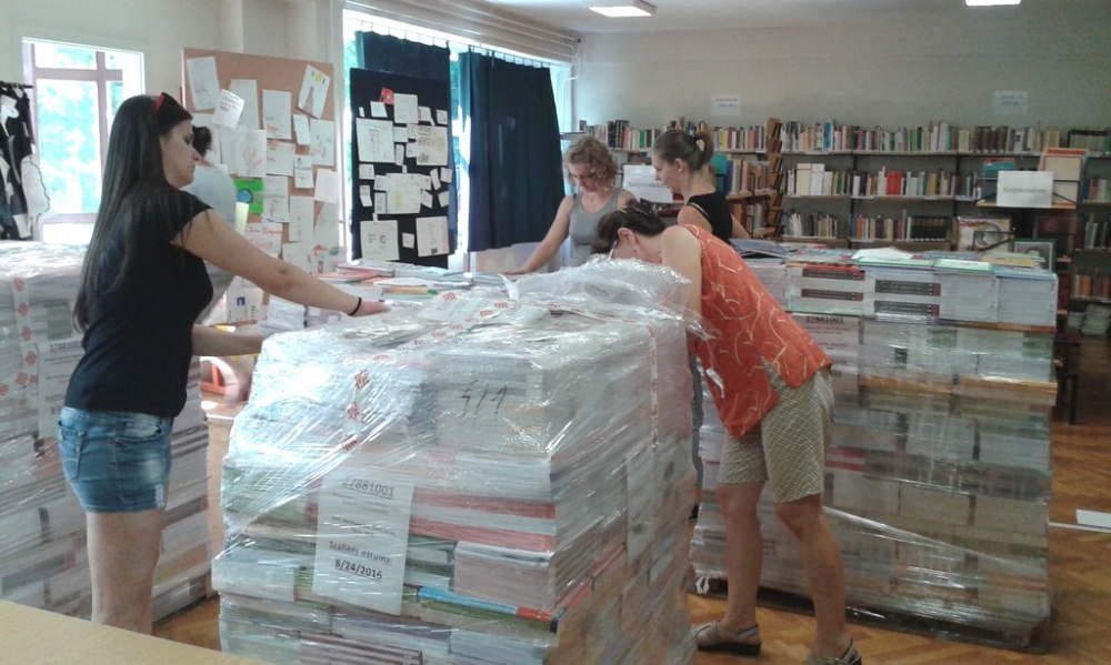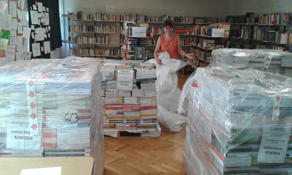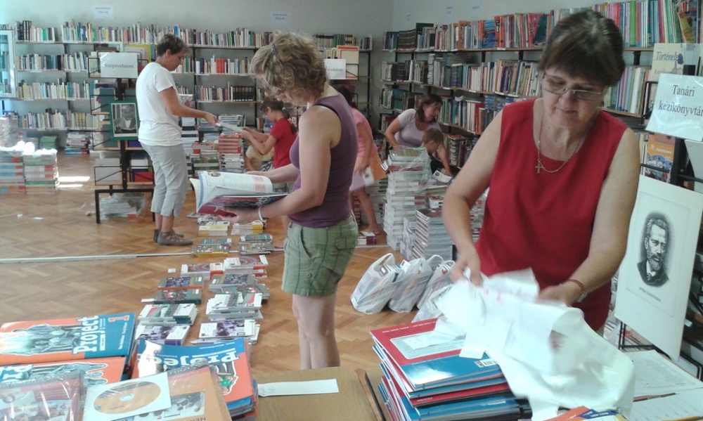 Az iskolai könyvtárban történt a tankönyvek „fogadása” (8500 db), majd a ki- és szétpakolása, majd osztályonkénti csoportosítása.