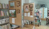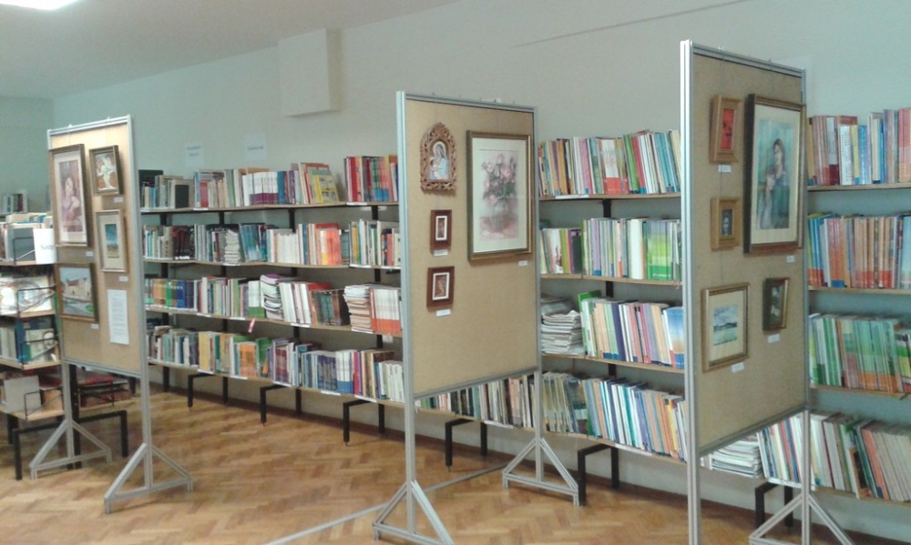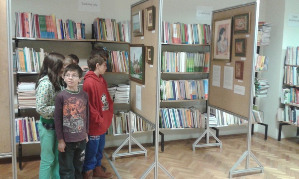 Minitárlat az iskolai könyvtárban Jakubik István képeiből.