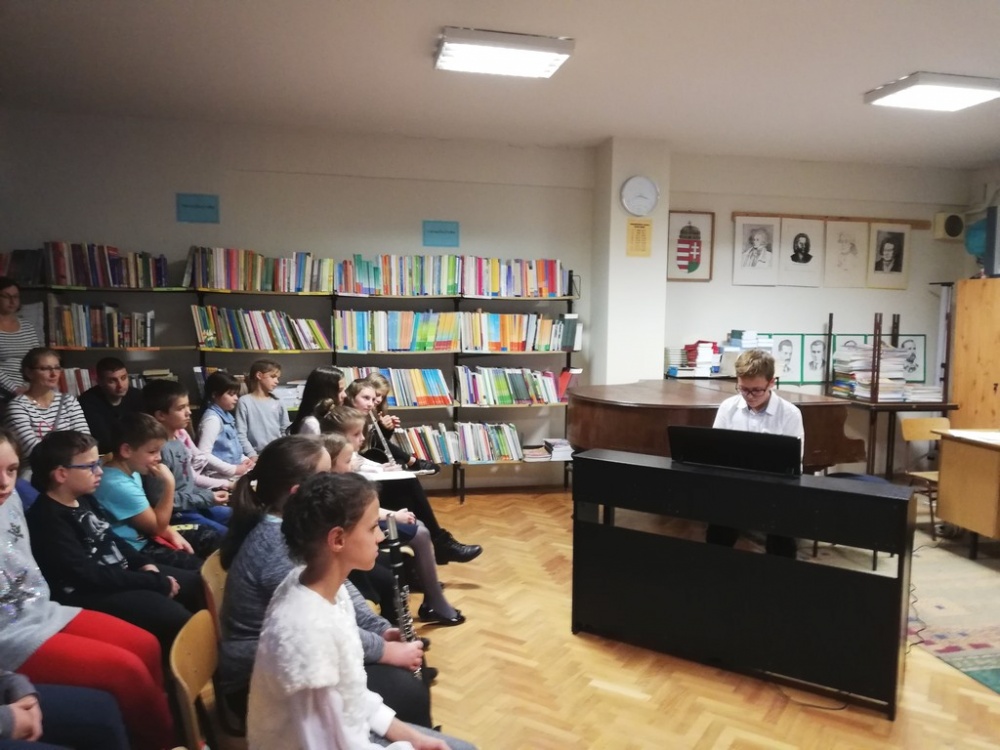 Elérkezett az idei tanév 2019-es évének utolsó, a zenélő könyvtár keretein belül megrendezett könyvtári hangverseny decemberi koncertjének a napja.