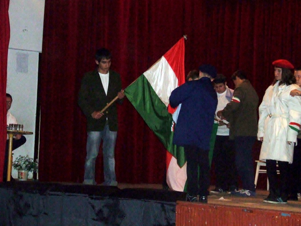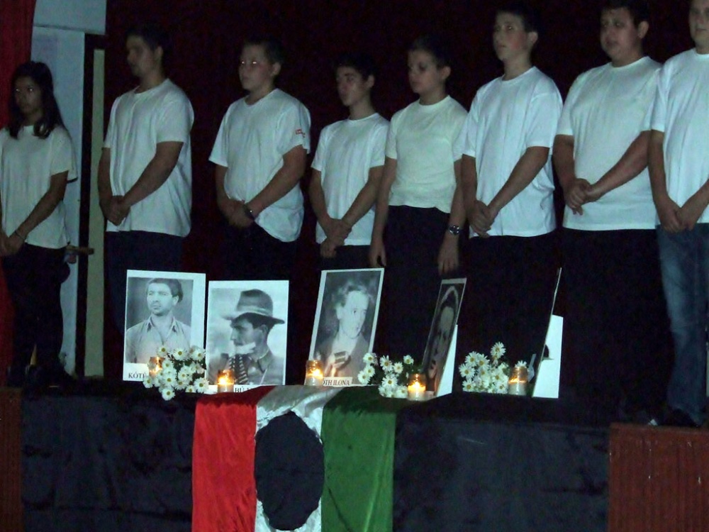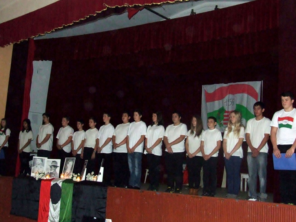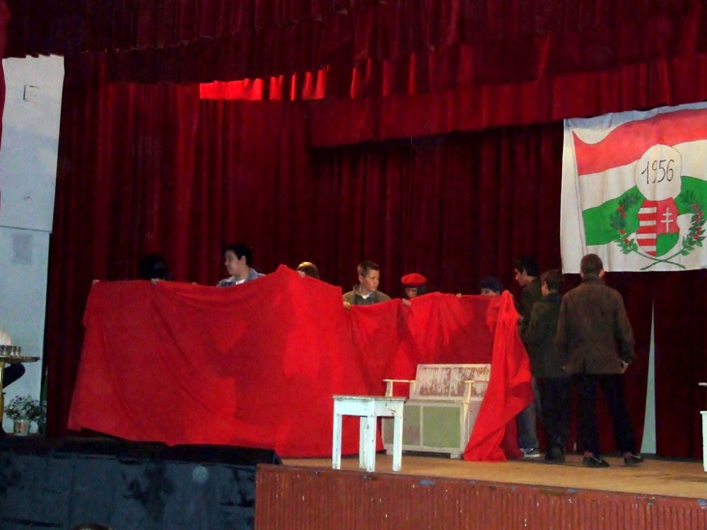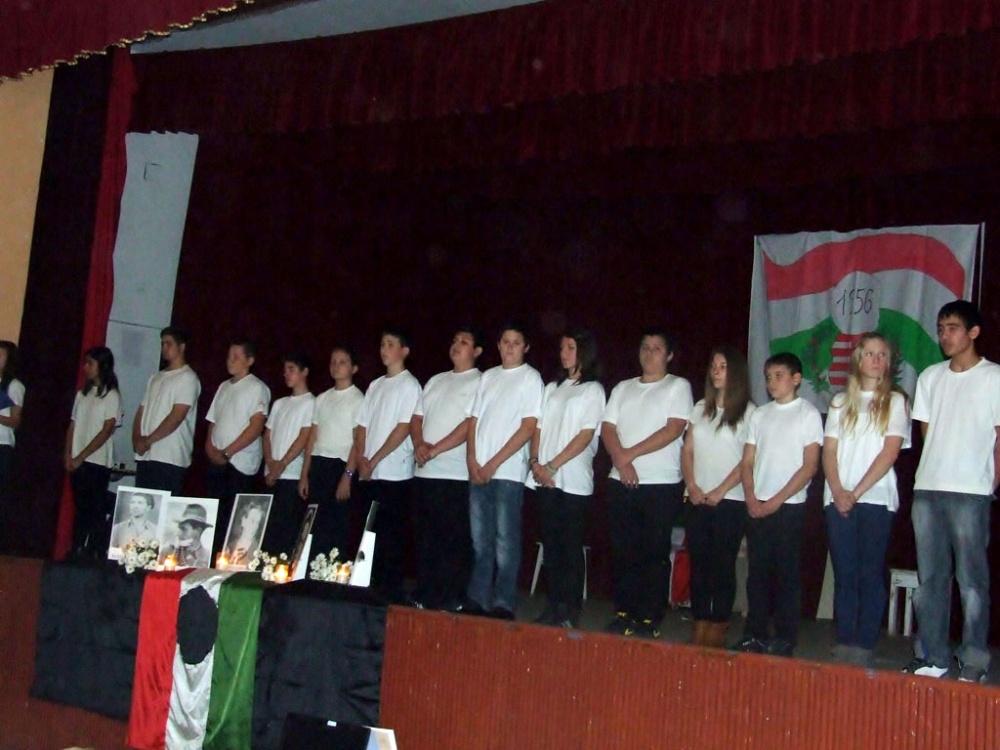 A hagyományokhoz híven az idén is az egyik 8. osztály készítette az október 23-ai iskolai és városi megemlékezésre a műsort.