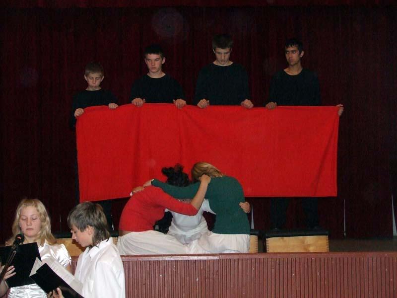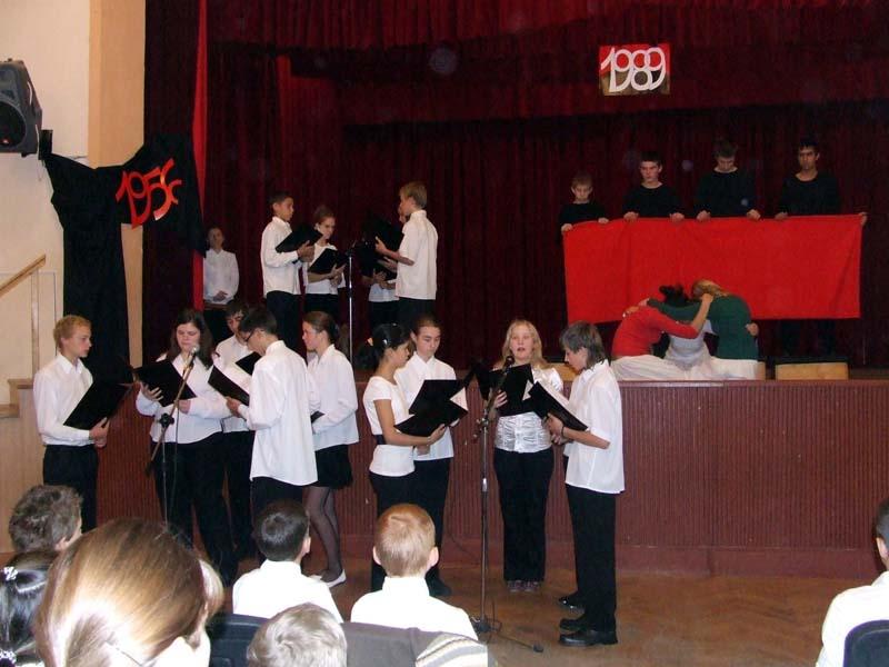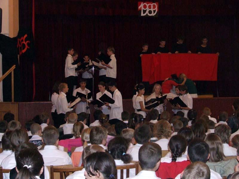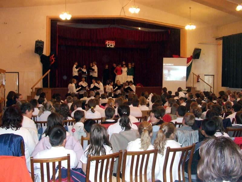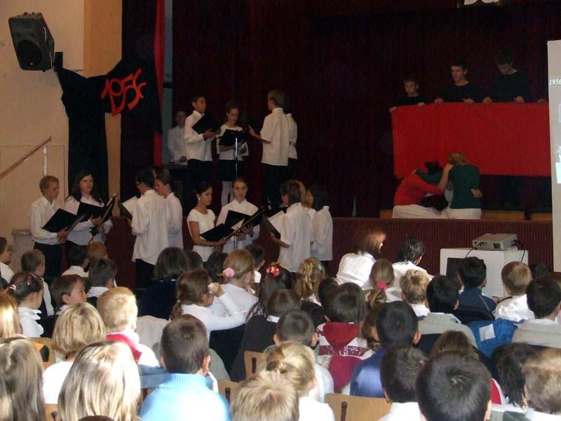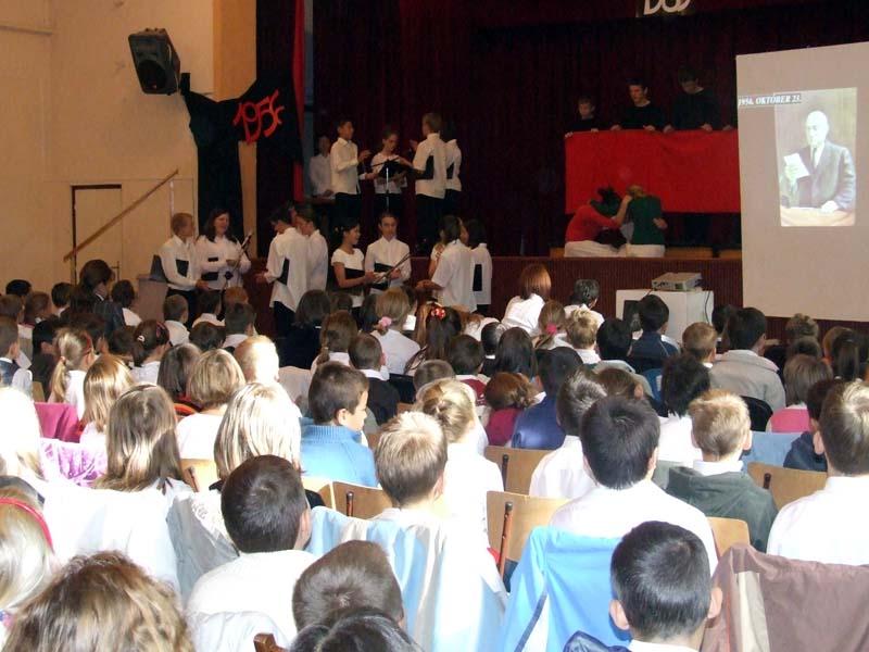 A hagyományokhoz híven az idén is az egyik 8. osztály készítette az október 23-ai iskolai és városi megemlékezésre a műsort.