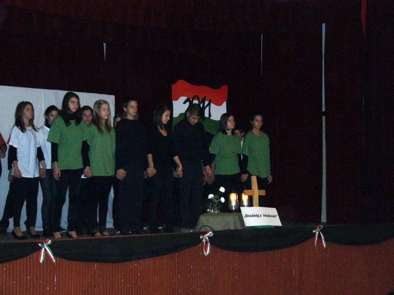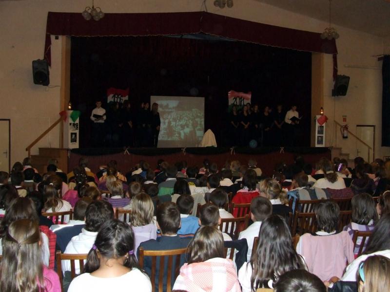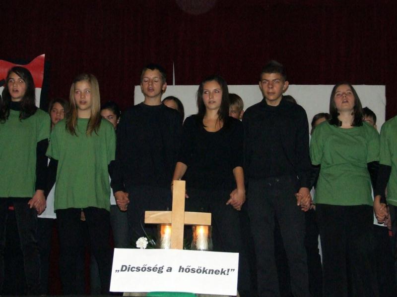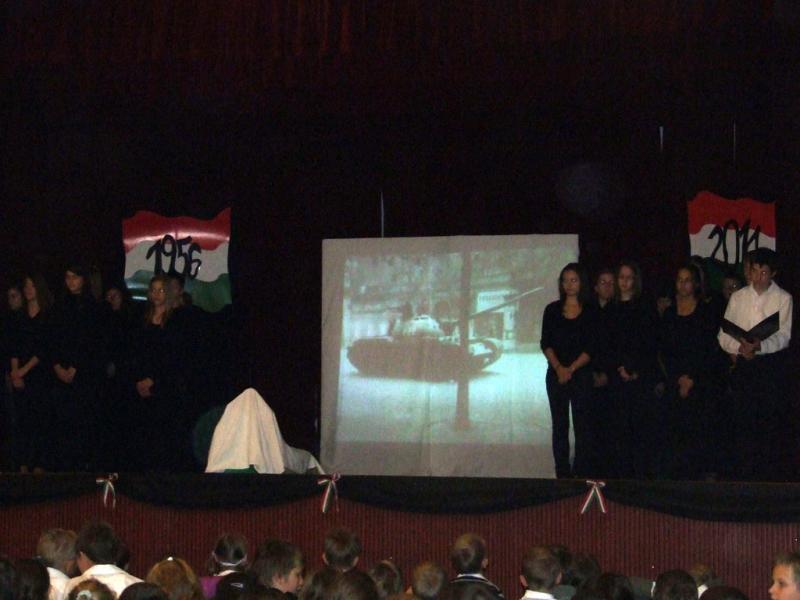 A hagyományokhoz híven az idén is az egyik 8. osztály készítette az október 23-ai iskolai és városi megemlékezésre a műsort.