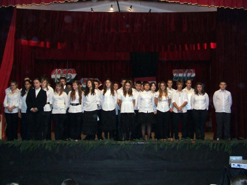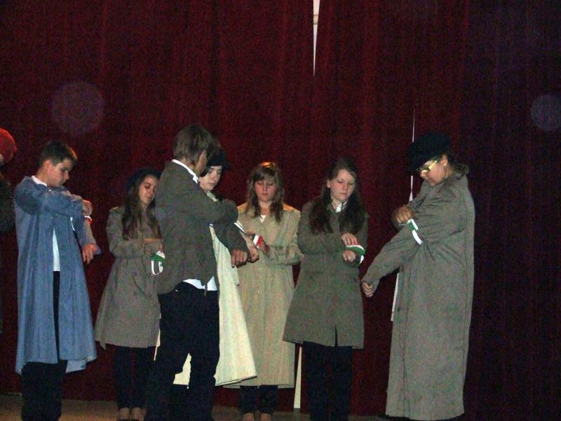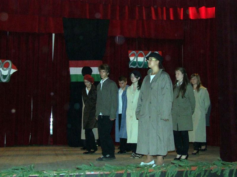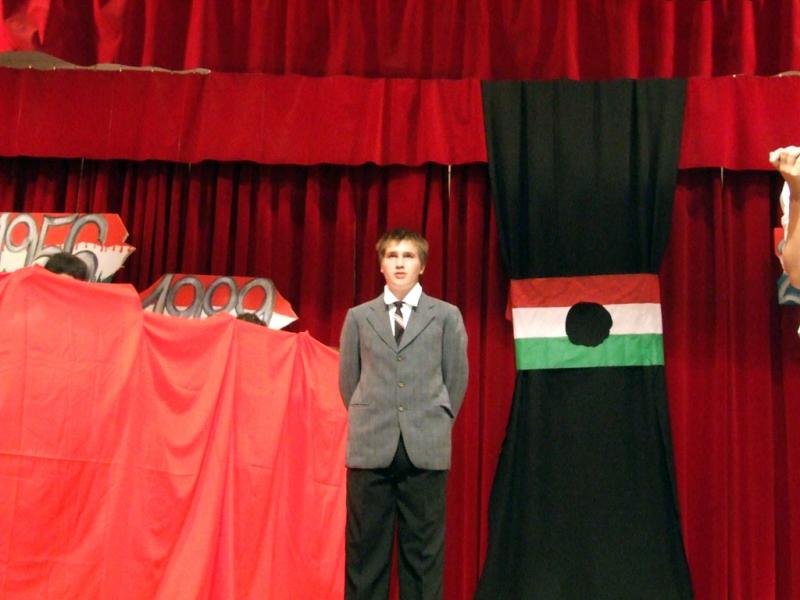 A hagyományokhoz híven az idén is az egyik 8. osztály készítette az október 23-ai iskolai és városi megemlékezésre a műsort.