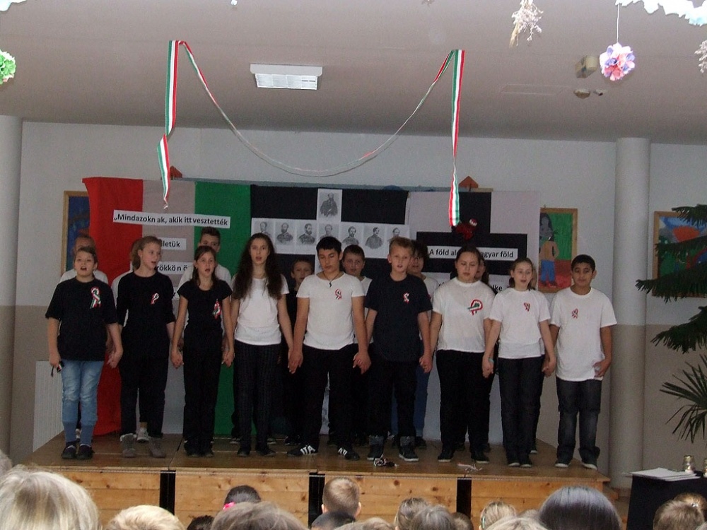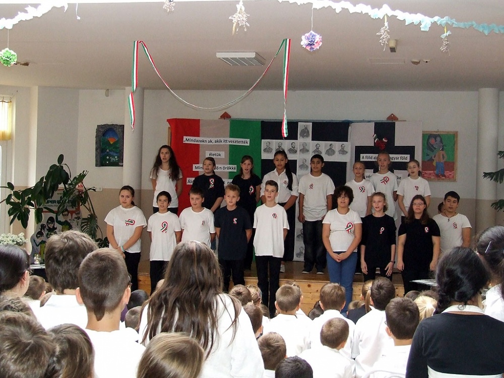 A hagyományokhoz híven az idén is az egyik 8. osztály készítette az október 23-ai iskolai és városi megemlékezésre a műsort.