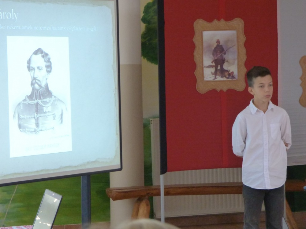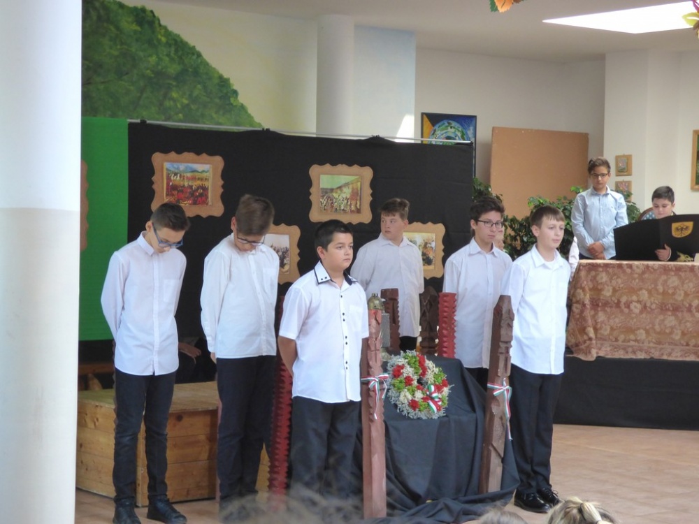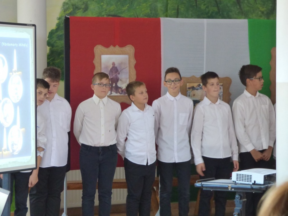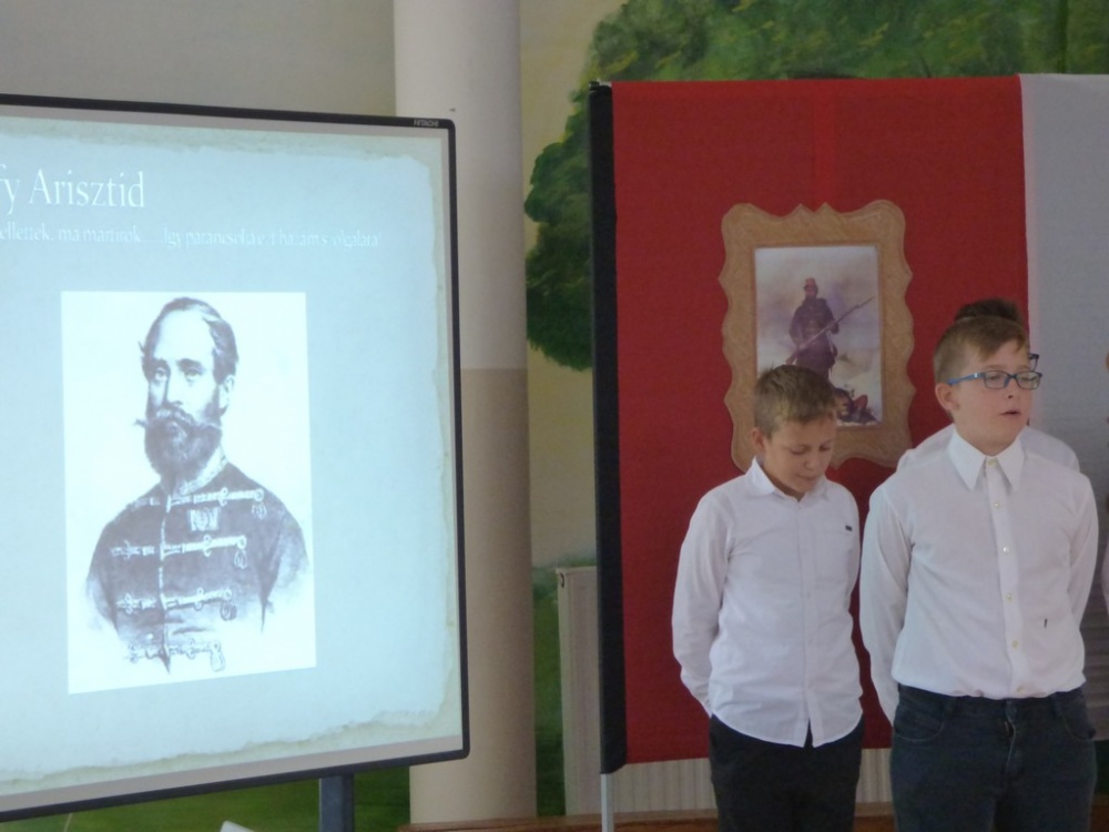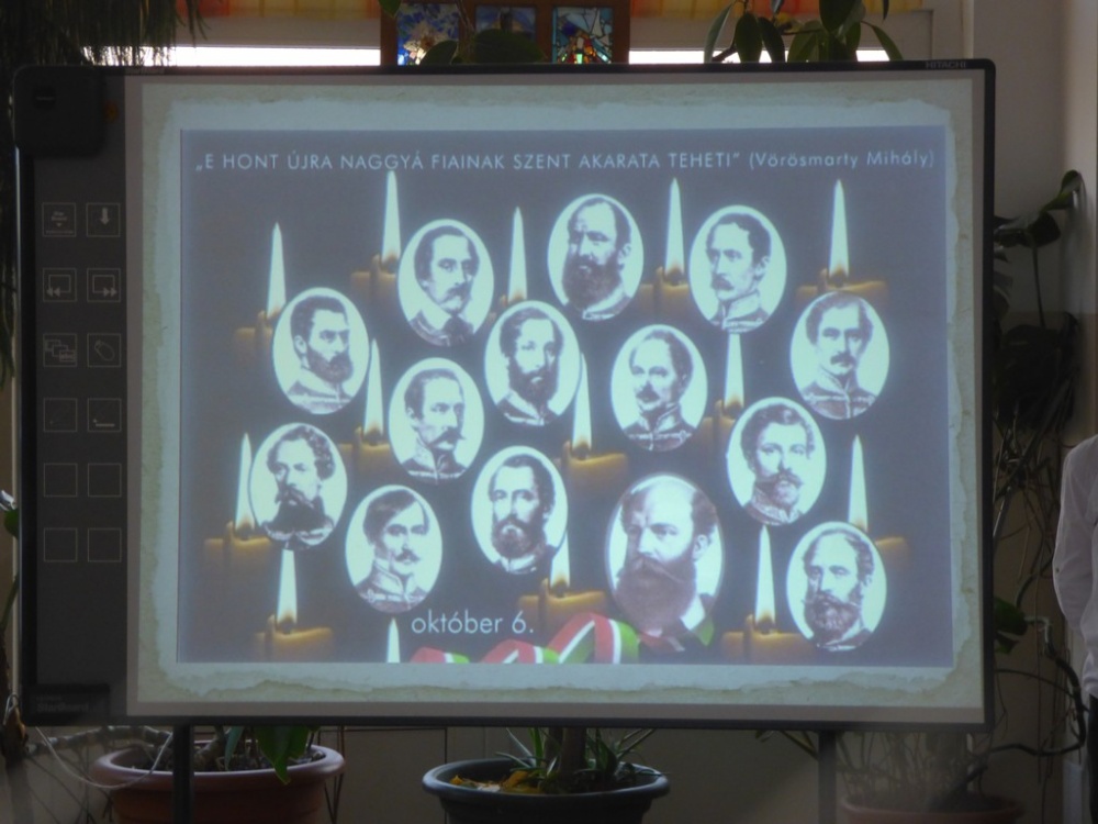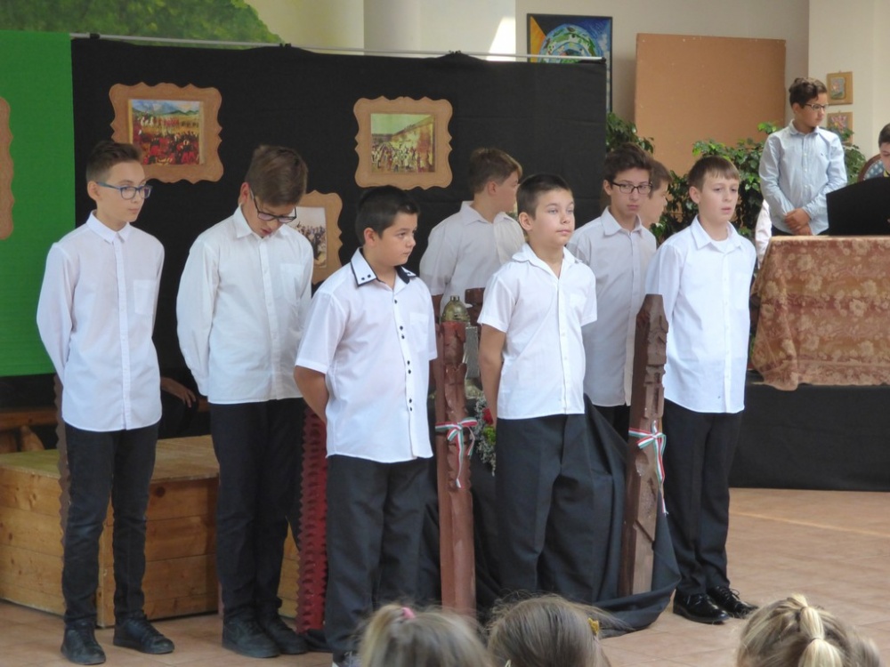 A tizenhárom aradi vértanú halálának 169 . évfordulóján a 6.a osztály tanulói emlékeztek. Műsorukban felidézték a hős honvéd tábornokok életútját, forradalmi tevékenységét, megidézték a katona törvényszéket, amely gyorsan és a felsőbb utasítás parancsára a halálba küldte a hősöket. Életük példaértékű volt, ezt próbálták a tanulók hangsúlyozni a mai gyermekek számára.
