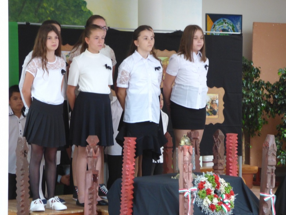 A hagyományokhoz híven az idén is az egyik 8. osztály készítette az október 23-ai iskolai és városi megemlékezésre a műsort.