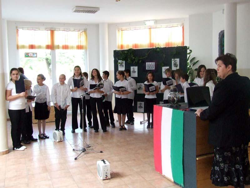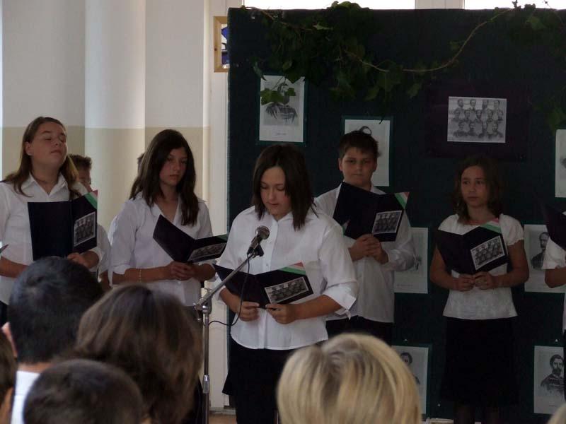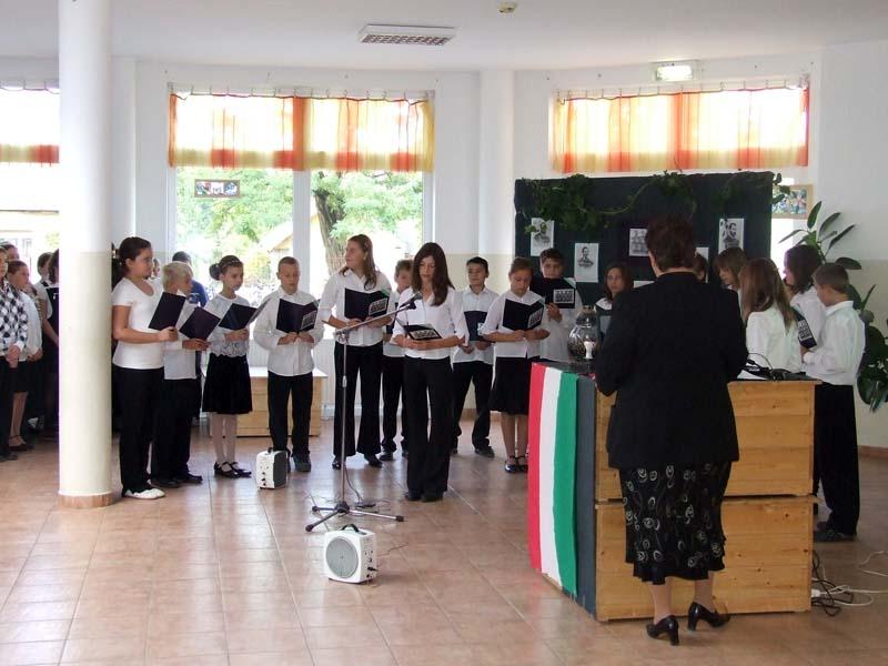 A hagyományokhoz híven az idén is az egyik 8. osztály készítette az október 23-ai iskolai és városi megemlékezésre a műsort.