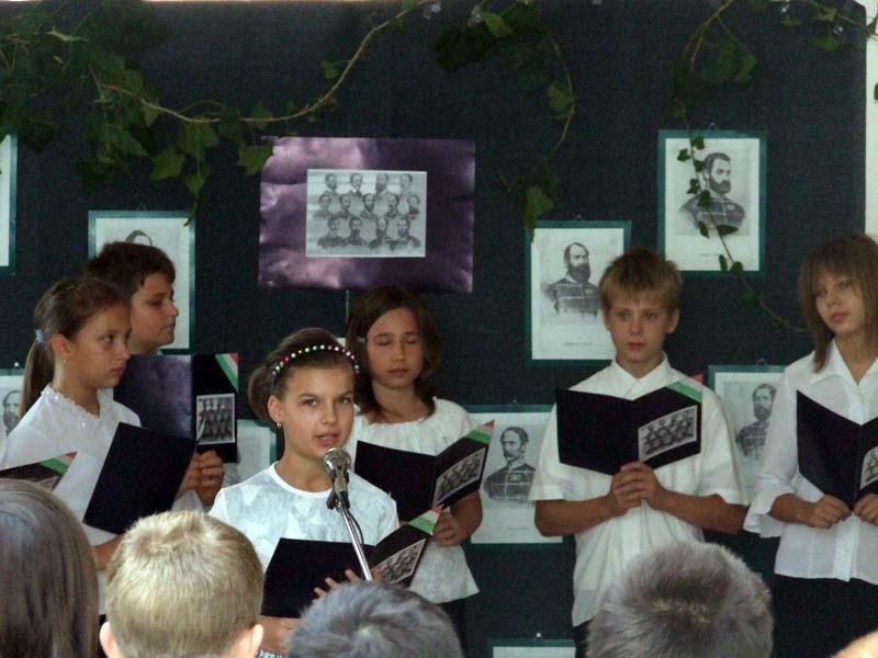 A tizenhárom aradi vértanú halálának 169 . évfordulóján a 6.a osztály tanulói emlékeztek.