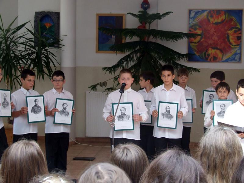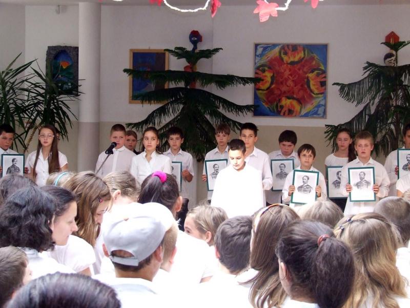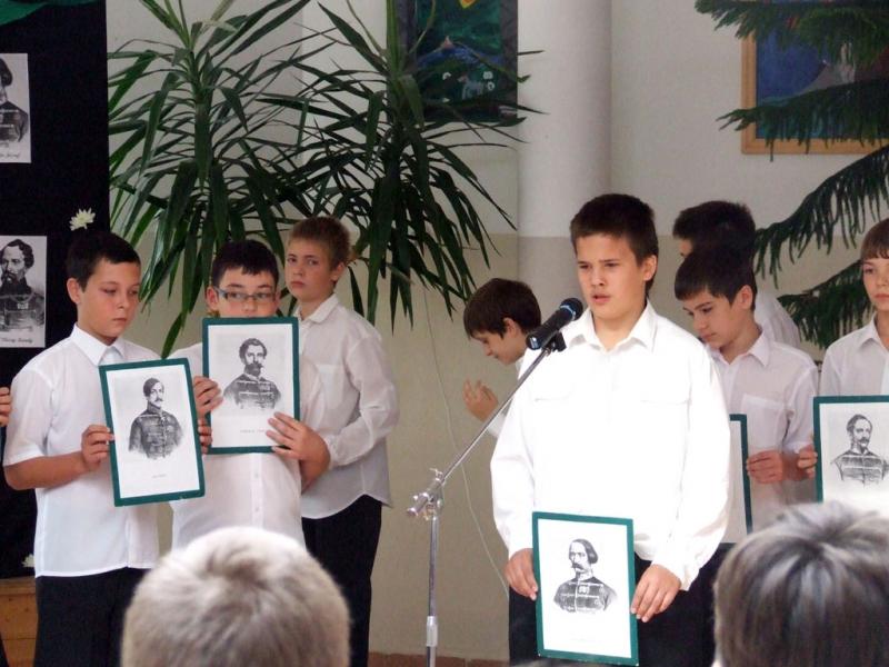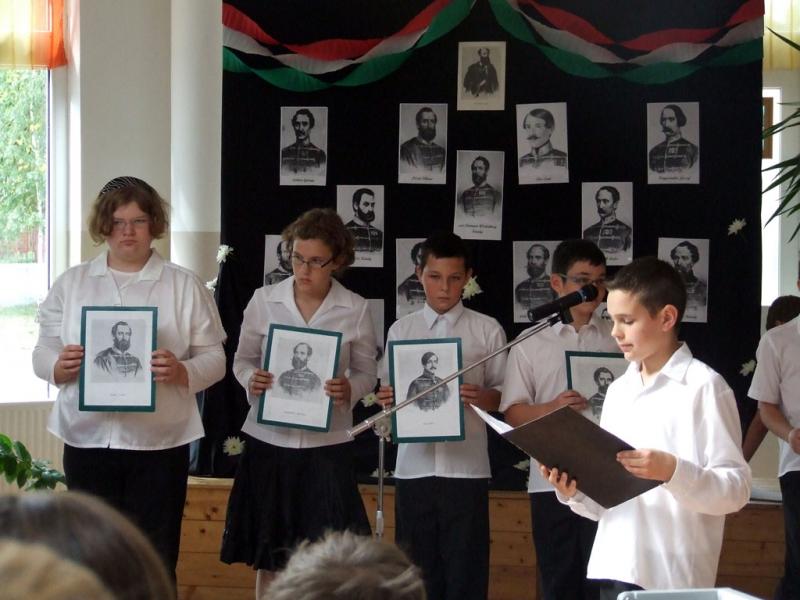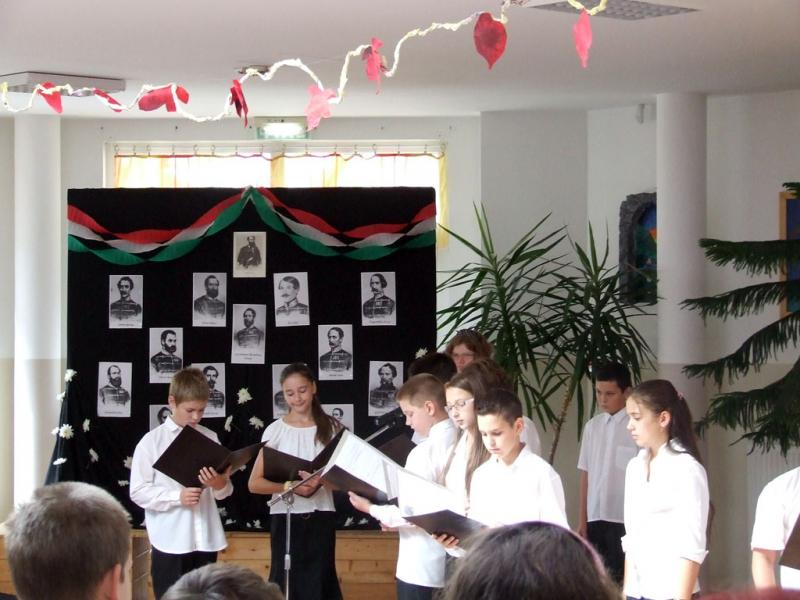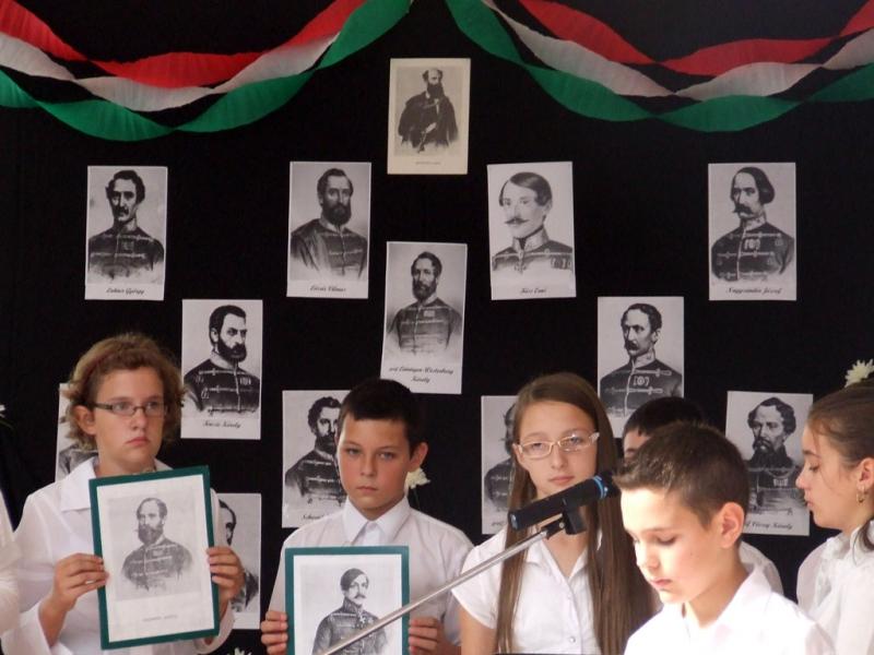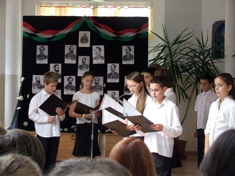 A tizenhárom aradi vértanú halálának 169 . évfordulóján a 6.a osztály tanulói emlékeztek.