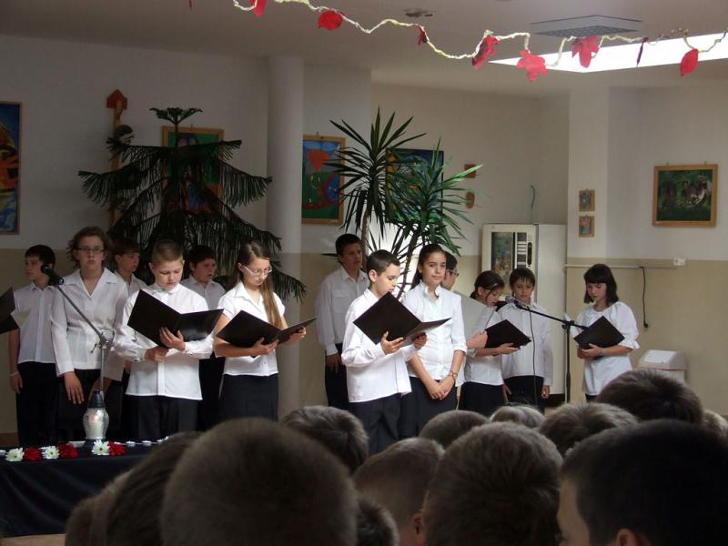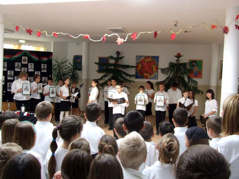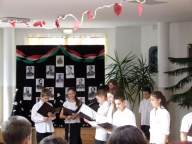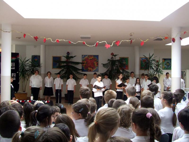 A hagyományokhoz híven az idén is az egyik 8. osztály készítette az október 23-ai iskolai és városi megemlékezésre a műsort.