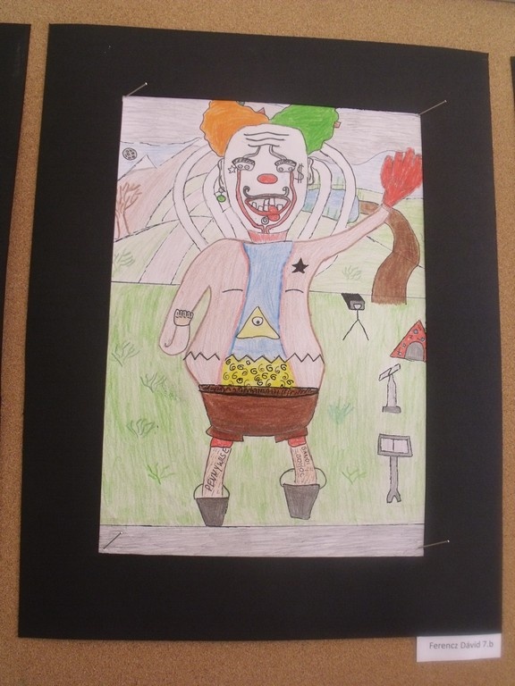Stein Kata 8.a osztályos tanuló alkotásával a „Az abszolút bankár karikatúrája” címet nyerte el.
