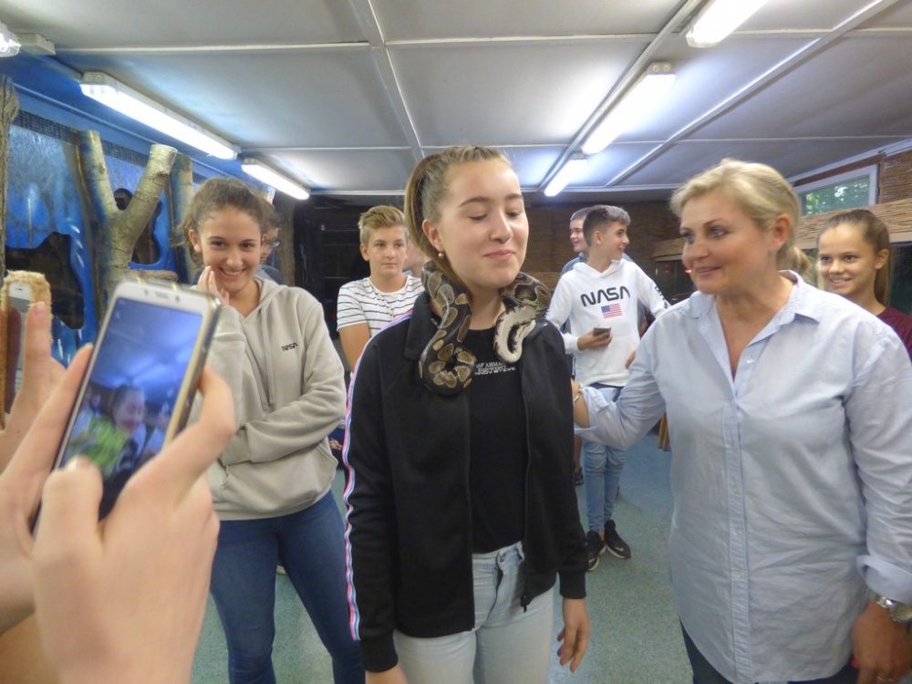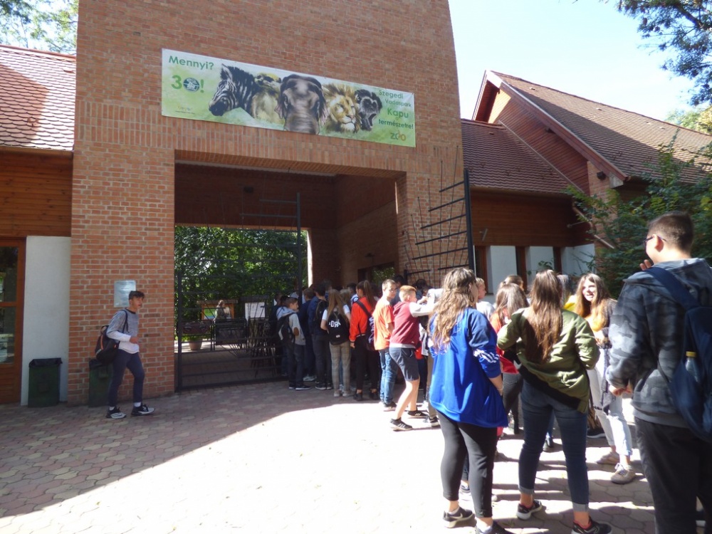 2019. szeptember 20-án a 7. és 8. évfolyam tanulóival valamint 12 kísérő pedagógussal vettünk részt Szegeden egy tartalmas programokkal megszervezett kiránduláson. A tanulók és kísérőik forgószínpad szerűen két helyszínen ismerkedhettek meg különböző természettudományos tantárgyakhoz köthető ismeretekkel. A hetedik évfolyam a Vadasparkban vett részt egy-egy órás bemutatón, amelyek témái: A Washingtoni egyezmény, állatkereskedelem valamint a Nem szeretem állatok voltak. Az előadók élményszerűen mutatták be a témákat, a tanulók közvetlen kapcsolatba kerülhettek a kígyókkal és csótányokkal is, de láthattunk csempészett és lefoglalt tárgyakat, amelyek védett állatok testrészeiből készültek. A bemutatók után lehetőség volt egy órás vadasparki sétára, ahol az állatokat földrészek szerinti bemutató egységekben ismerhettük meg, a szerencsésebbek fókatréningen is részt vehettek. Délben egy kiadós és igen finom ebéd keretében gyűltünk össze, a kiszolgálás és az ételek minősége is tökéletes és problémamentes volt. (a vegetáriánus és cukorbeteg tanulók számára is biztosították a megfelelő ellátást)