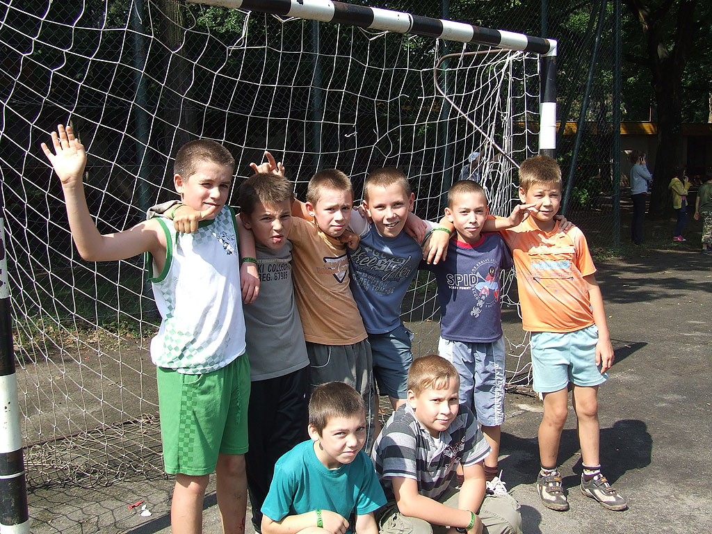 | 6. nap - szombat Számháborúval indítottuk a napot. Ebéd után strandoltunk. A bátrabbak a stégről ugráltak, a többiek pancsoltak, napoztak, köveket gyűjtöttek. Délután 4-kor kezdődött az akadályverseny, melynek témája a szelektív hulladékgyűjtés, a megújuló energiák, a környezetszennyezés, a természeti katasztrófák voltak. Az állomásokon a gyerekek barchobáztak, activityztek, ügyességi feladatokat végeztek, tesztet oldottak meg, verset írtak és jelmezt terveztek. Vacsora után a táborzárón volt az egész héten zajló versenyek eredményhirdetése. Így szerepeltünk: sport - I. hely Kereki leány röplabdacsapat akadályverseny - I. hely Kerek 1 csapat Este meglepetéskoncertet adott a Children of Distance a táborlakóknak. Óriási sikerük volt. A koncert után következett a táborzáró diszkó. Képek |