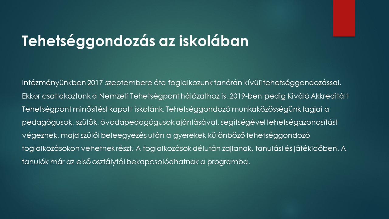 Tehetséggondozás az iskolában