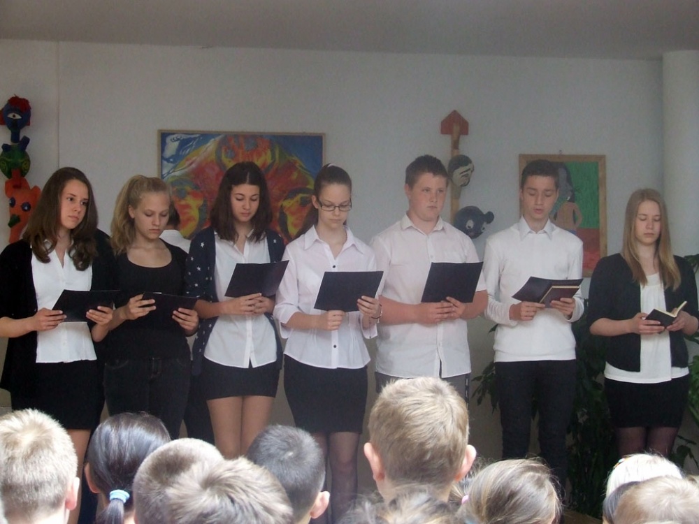 A hagyományokhoz híven az idén is az egyik 8. osztály készítette az október 23-ai iskolai és városi megemlékezésre a műsort.