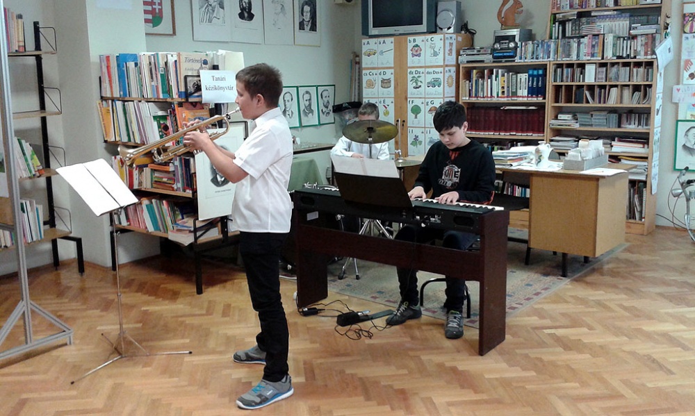 Az iskolai könyvtárban a „Zenélő könyvtár” címet viselő hangversenysorozat jelen alkalommal a második születésnapját is ünnepelte, mivel 2014. május 20-án egy rendhagyó koncerttel debütált e program, ami az óta is töretlen sikernek örvend.