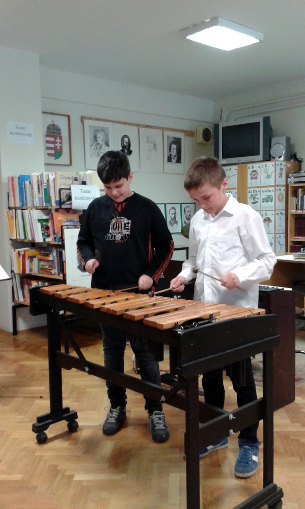 A „Dinamikus duó” tagjai Jakubik Levente és Tőzsér Márk xilofonon adták elő az Angry birds című darabot sikerrel, ami remek zárása volt a születésnapi koncertnek.