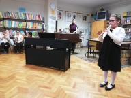 Szép pillanatoknak lehettünk tanúi, amikor zenetanár és növendéke együtt adott elő csodálatosan szép dallamokat különböző hangszereken, de a mostani alkalommal - mint már máskor is - tanúi lehettünk egy varázslatos négykezes zongoramuzsika előadásnak is.